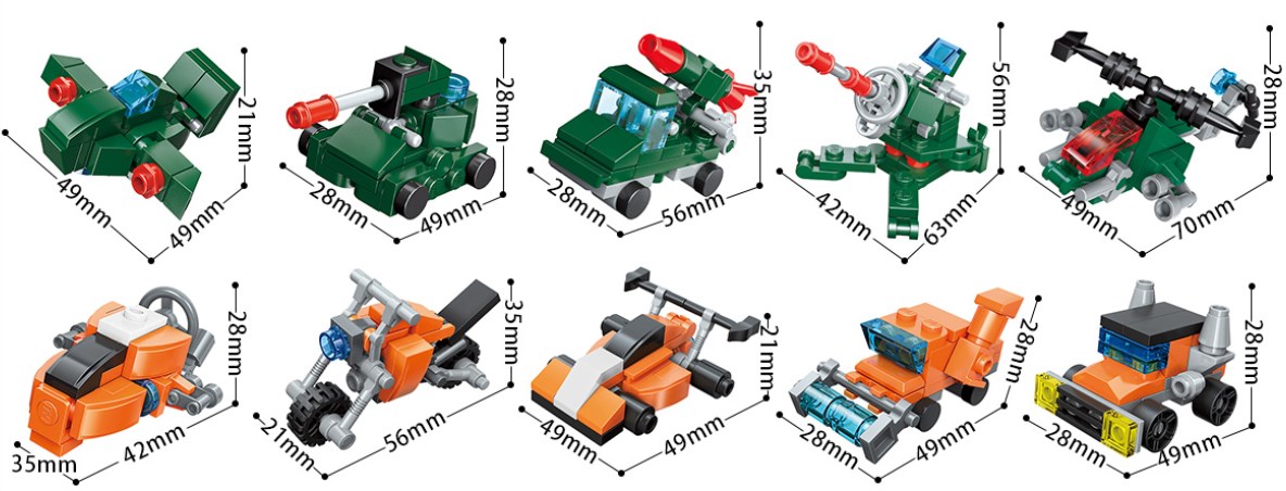 Eignen sich super als kleine Give-Aways auf einer Geburtstagsparty, als Mitbringsel oder für einen Adventskalender. 10 Minisets einzeln in Boxen verpackt, jeweils mit einer Anleitung für drei verschiedene Modelle. Zusätzliche Bauanleitungen im Downloadbereich des Artikels.