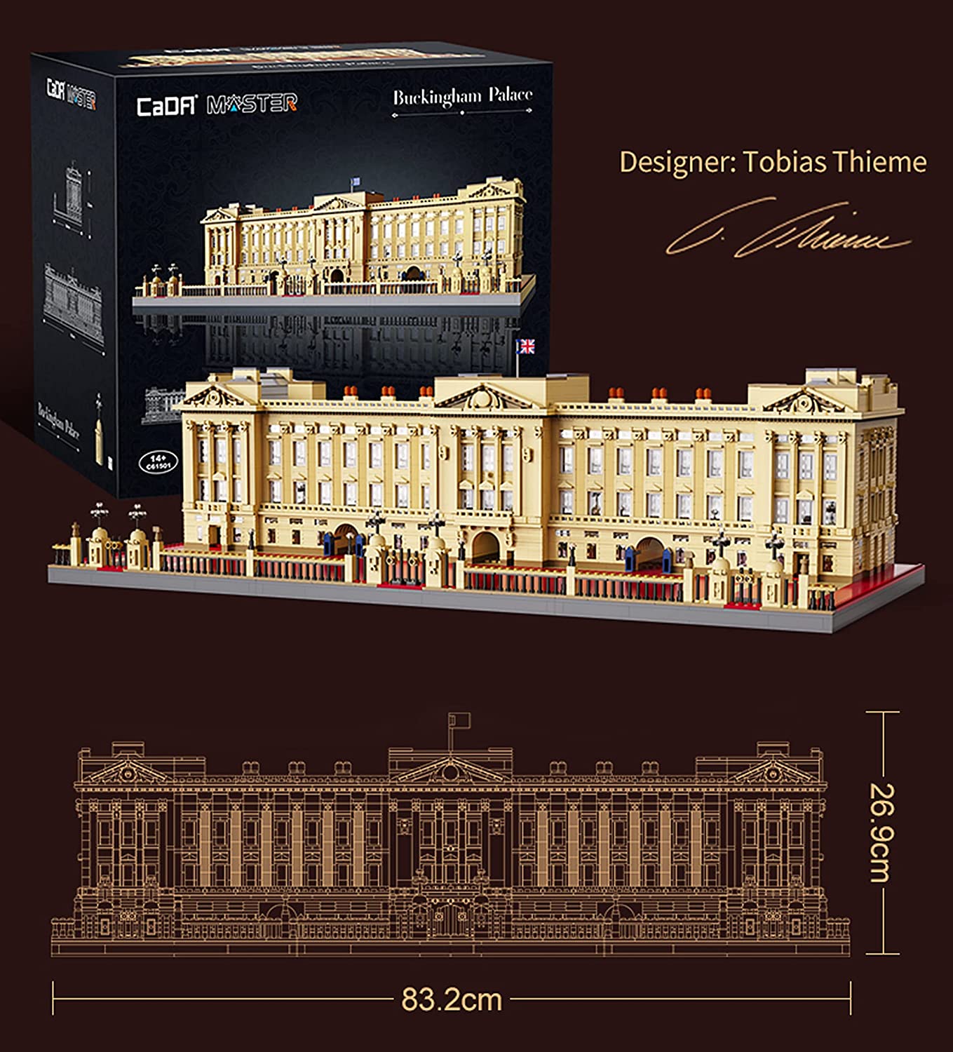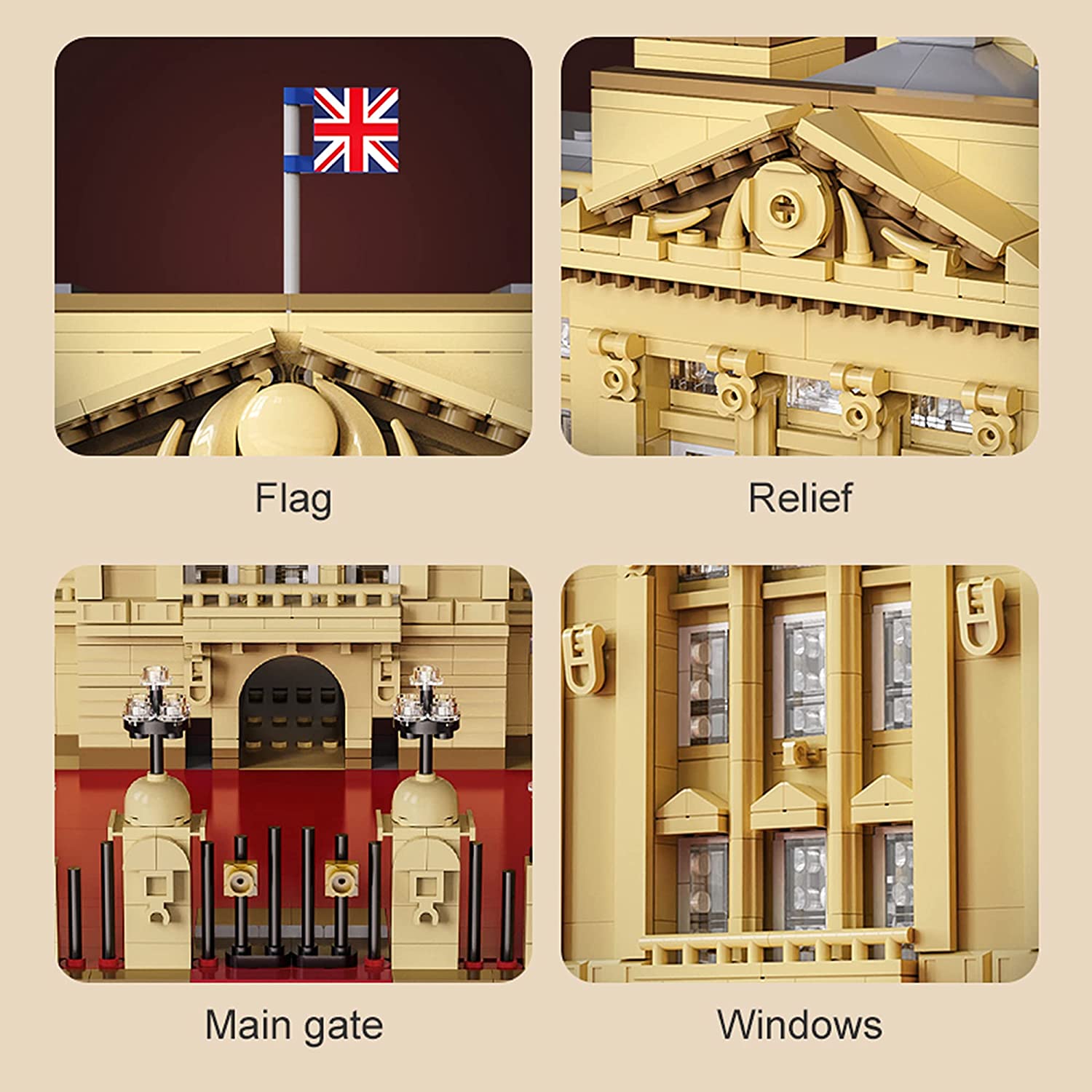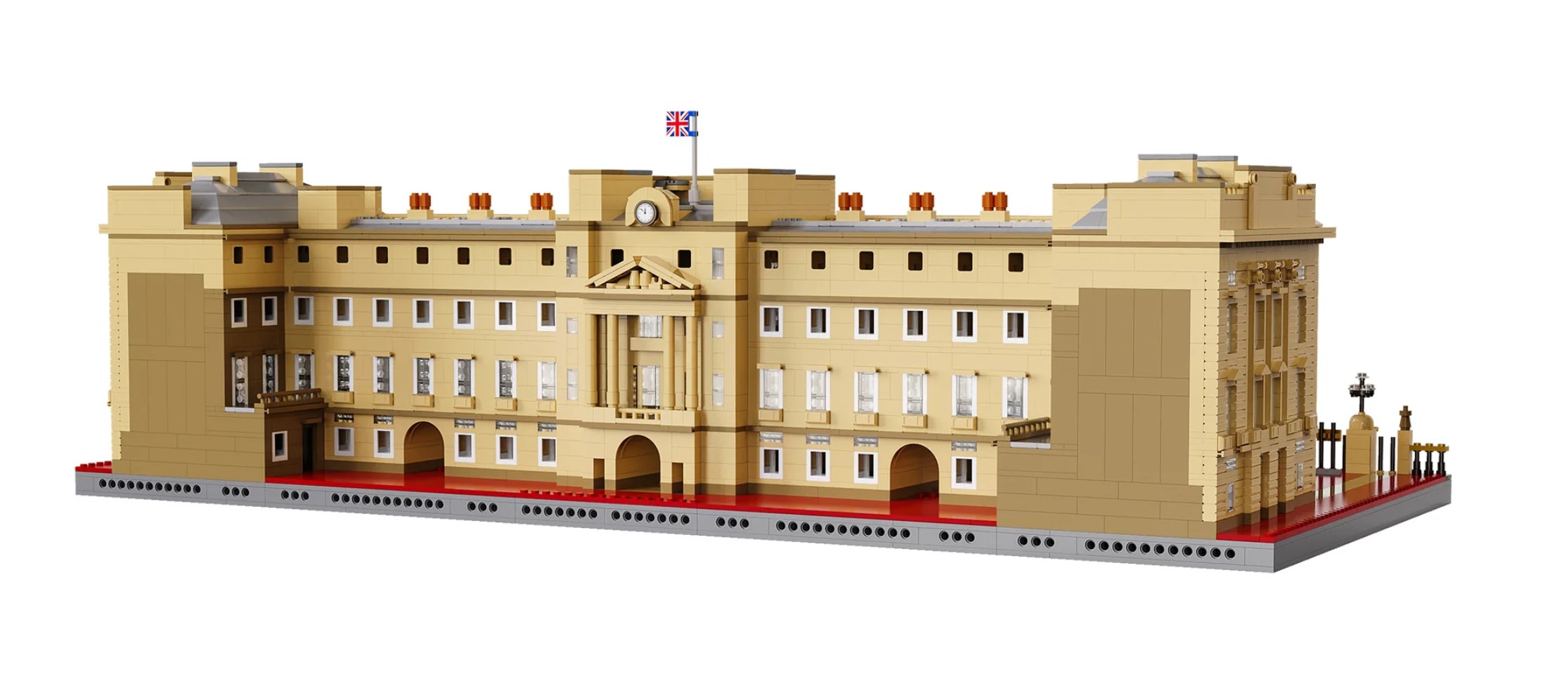 Mit einer Gesamtlänge von 83,2 cm präsentiert sich dieses Modell eben so eindrucksvoll wie das reale Vorbild. Das Set ist voll-modular aufgebaut und lässt sich in acht Teile aufteilen. Viele Details wie eine England-Flagge, die Wachhäuschen der Palast-Wache aber auch die einzigartige Fensterfront wurden liebevoll umgesetzt und garantieren einen lang anhaltenden Bauspass.