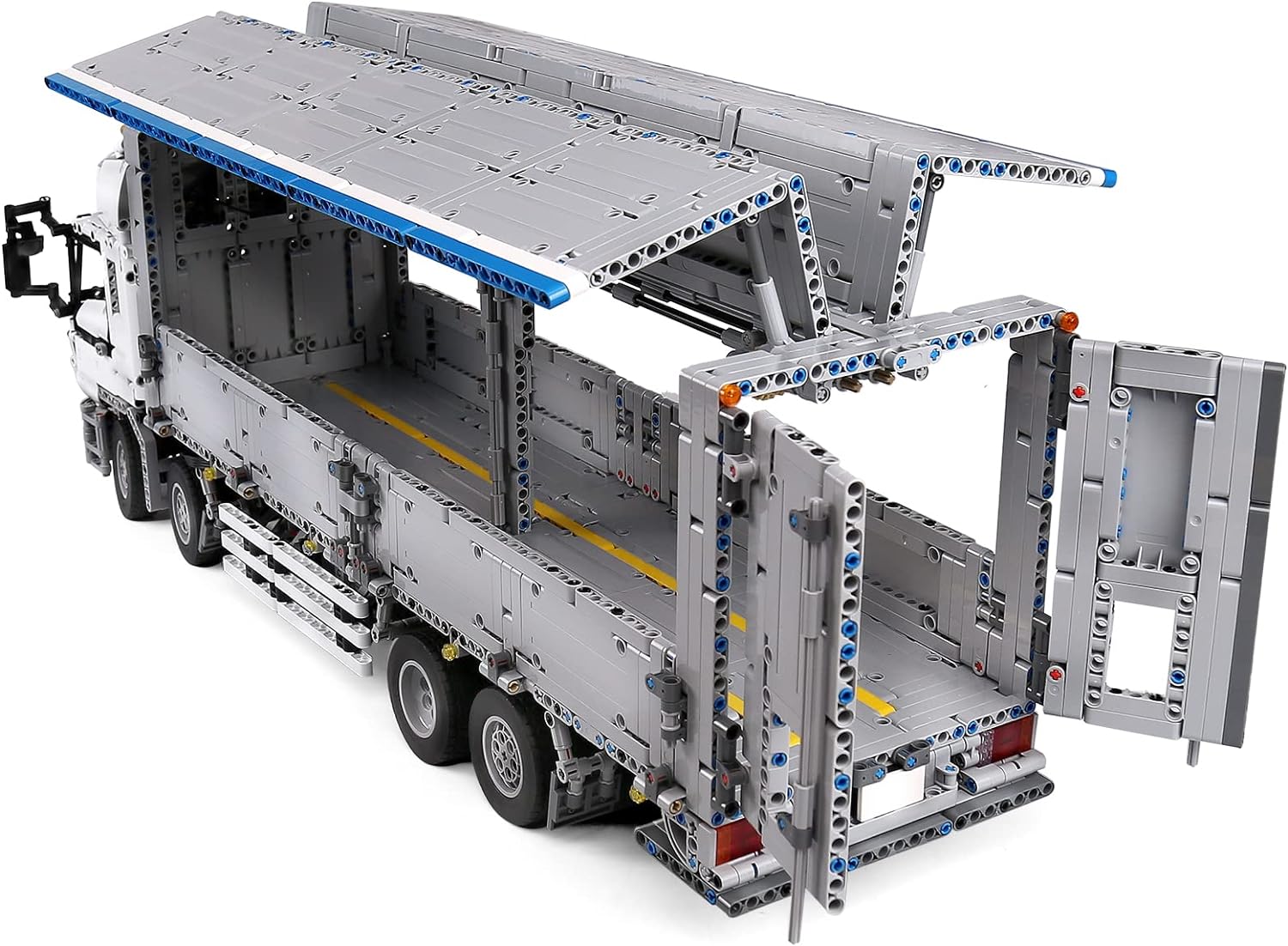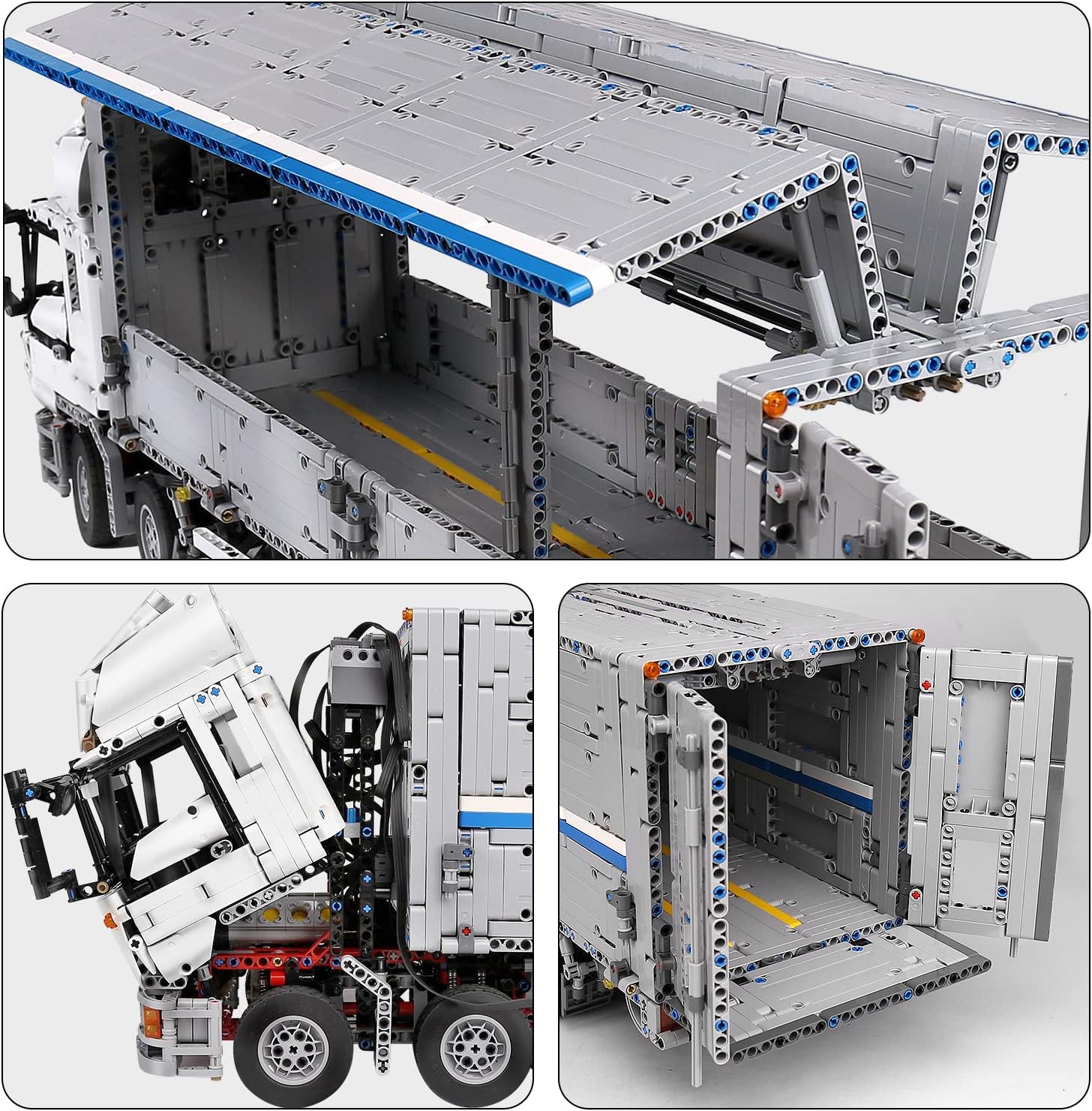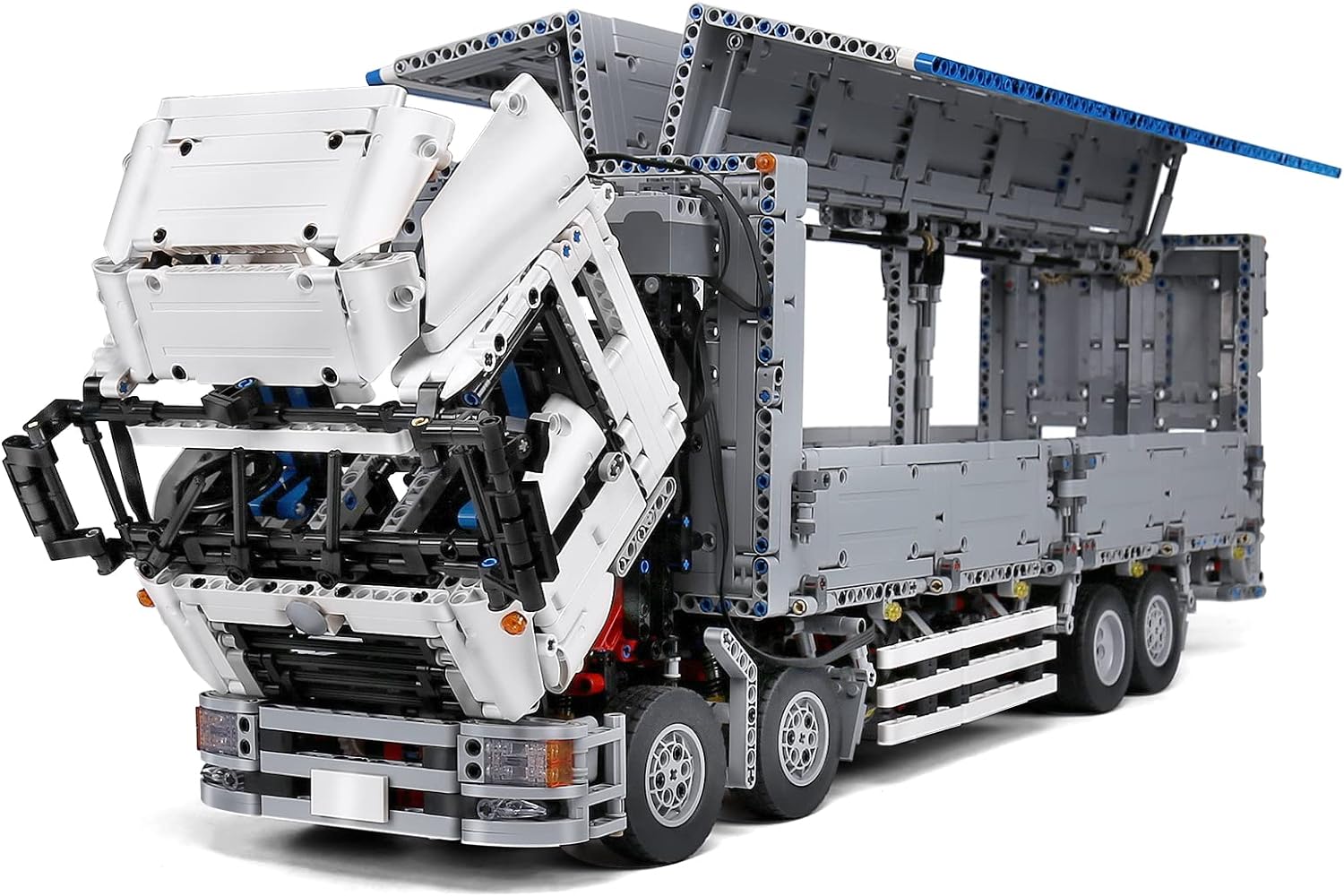 Der Truck ist mit den fast 11'000 Teilen und 19 Motoren eines der grössten Technic Sets auf dem Markt. Der Wagen kann per Fernbedienung oder App gesteuert werden (8x M-Motor, 4x L-Motor, 4x XL Motor, 3x Servo, 3x Akkubox + 1x Fernbedienung). Neue, überarbeitete S-Version. Die Kabine wird pneumatisch nach vorne gekippt. Der Ausleger kann ausgefahren, angehoben und abgesenkt, sowie um 180° gedreht werden. Sowie viele weitere tolle Funktionen - eben ein echtes Technic-Set.Nur etwas für fortgeschrittene Baumeister.