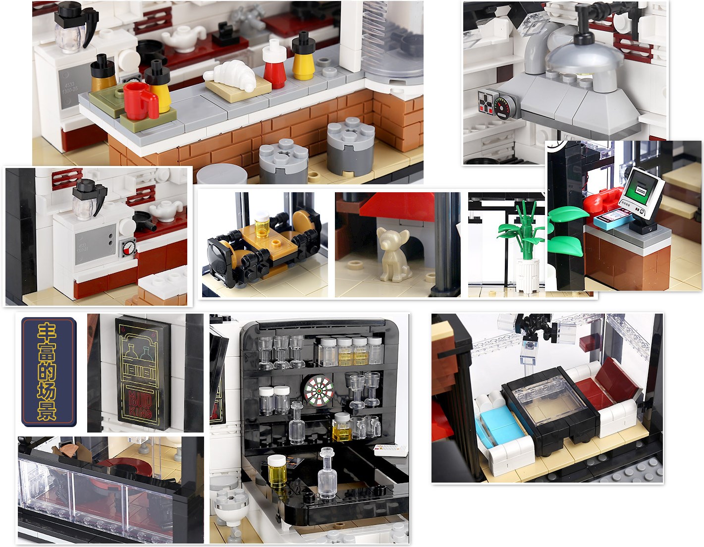 It's time for tea - Lust auf einen Bubble-Tee im neuesten Gebäude von OhSoJang? Das modulare Gebäude überzeugt durch seine komplexe, moderne Fassade und ein hohes Maß an Modularität. Der Innenraum strotzt nur so vor Details und ist in viele kleine Module aufgeteilt, die sich leicht auseinander nehmen lassen. In fast jeder Ecke gibt es neue Geheimisse zu entdecken. Da findet sicher jeder Gast einen passende Platz.Mork macht in moderne Architektur und hat mit dem MOC-Designer Oh So Jang einen echten Star der Szene mit ins Boot geholt. Mould King's Coffee Shop, Kunstgallerie und die Island Bar stammen vom selben Designer. Gute Qualität der Bausteine. 100% kompatibel mit den Klemmbausteinen anderer führenden Hersteller. Gut verständliche Bauanleitung beiliegend.