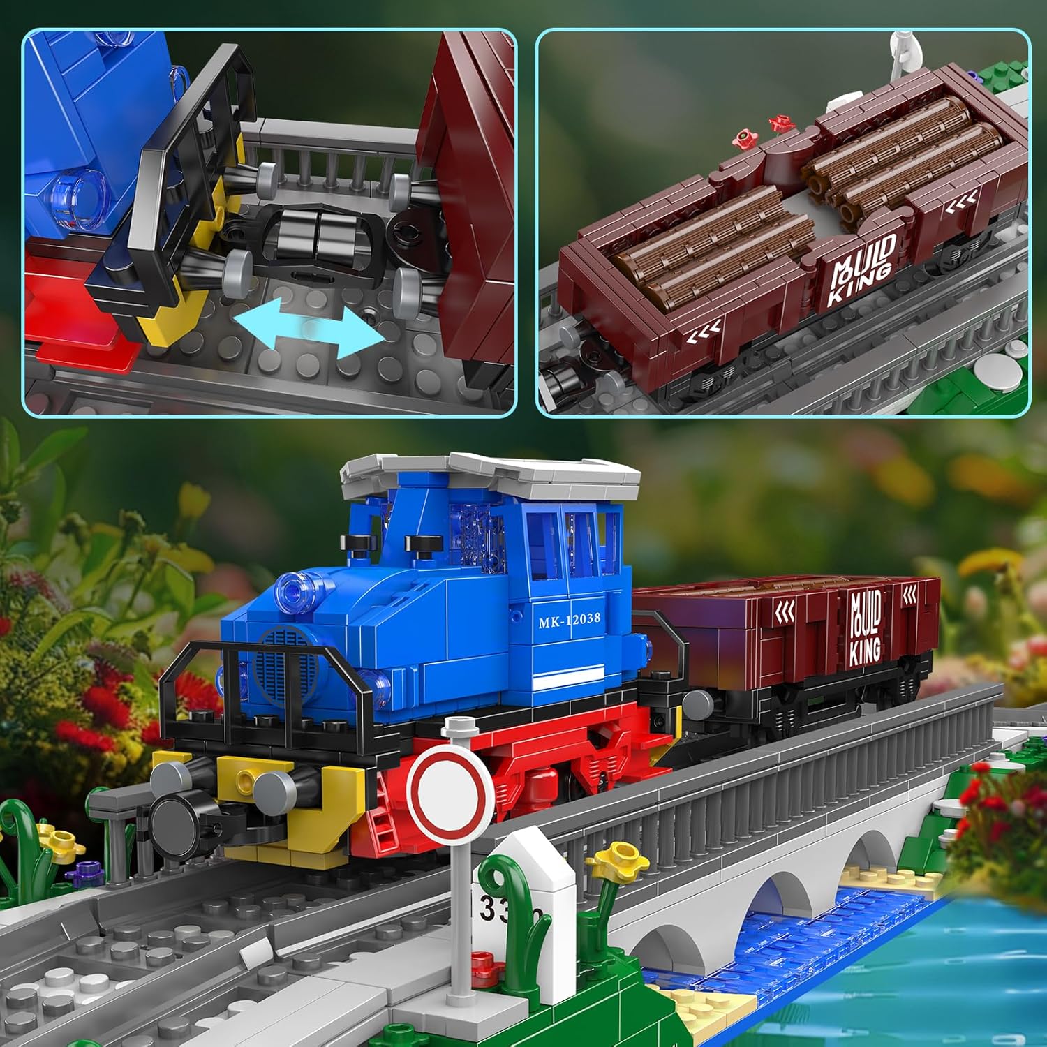Formschönes und farblich ansprechendes Modell einer EMD SD40-2 Diesel Lokomotive, inklusive Verladekran und LKW. Dieses Set ist mit dem Mould King RWY-Modul motorisiert und wird über die beiliegende Fernbedienung gesteuert. Das RYW-Modul vereint Antrieb, Empfänger und Akku in einem Modul, dass an den Form-Faktor des Eisenbahn-Motor angelehnt ist (aber 1 Noppen breiter). Wie bei der World Railway Reihe von Mould King üblich gehört zum Set auch noch ein Schienen-Oval (120cm x 80cm). Dieses lässt sich in ein vorhandenes Schienen-Netz integrieren, da voll kompatibel mit den führenden Herstellern. Wie immer bei Mould King sind die Steine nach Bauabschnitten in Tüten vorsortiert und die Anleitung leicht verständlich.