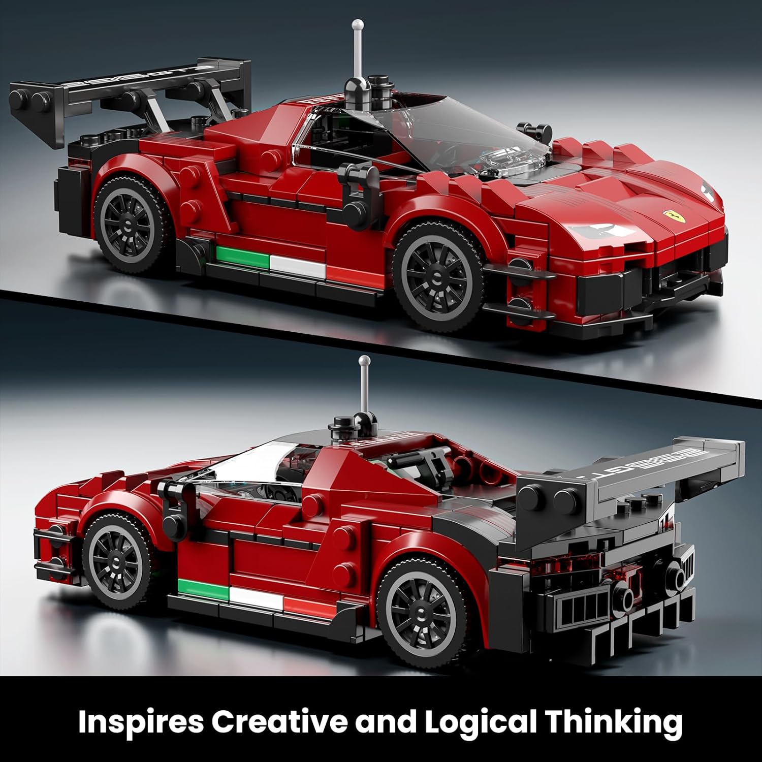 Dieser Rennwagen mit 8 Noppen Breite lässt Klemmbausteinmeister einen der exklusivsten Flitzer der Welt sammeln. Baue und entdecke diese detailgetreue Nachbildung eines Ferrari F296 GT3. Faszinierend aus jedem Blickwinkel und geeignet zum Ausstellen oder für spannende Rennen!