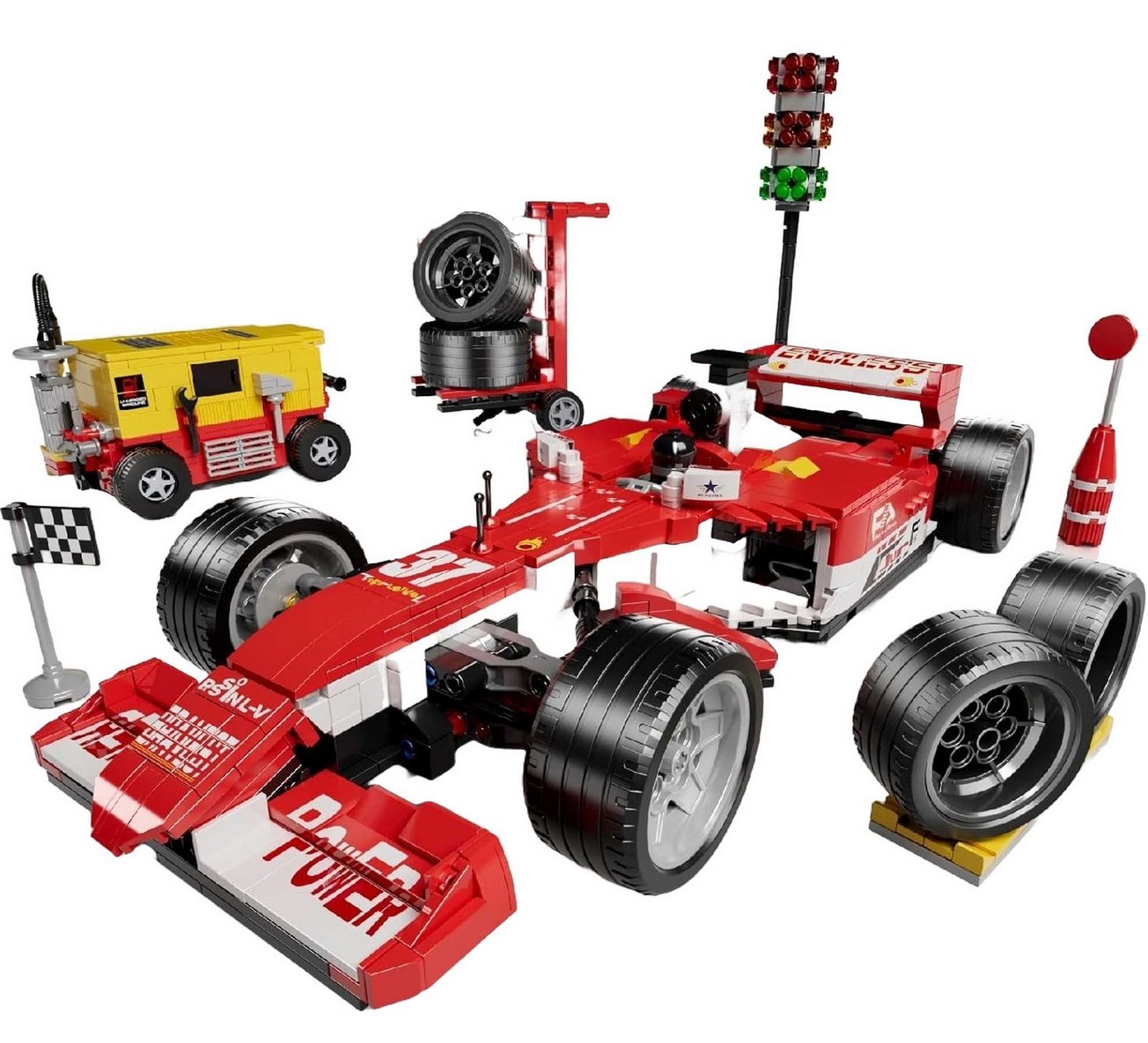 Bereit für die Pole-Position? Der Mould King 10035 Formel 1 Rennwagen ist mehr als nur ein Klemmbaustein-Set – es ist eine Hommage an den Motorsport mit realistischen Detailsm und umfangreichem Zubehör.