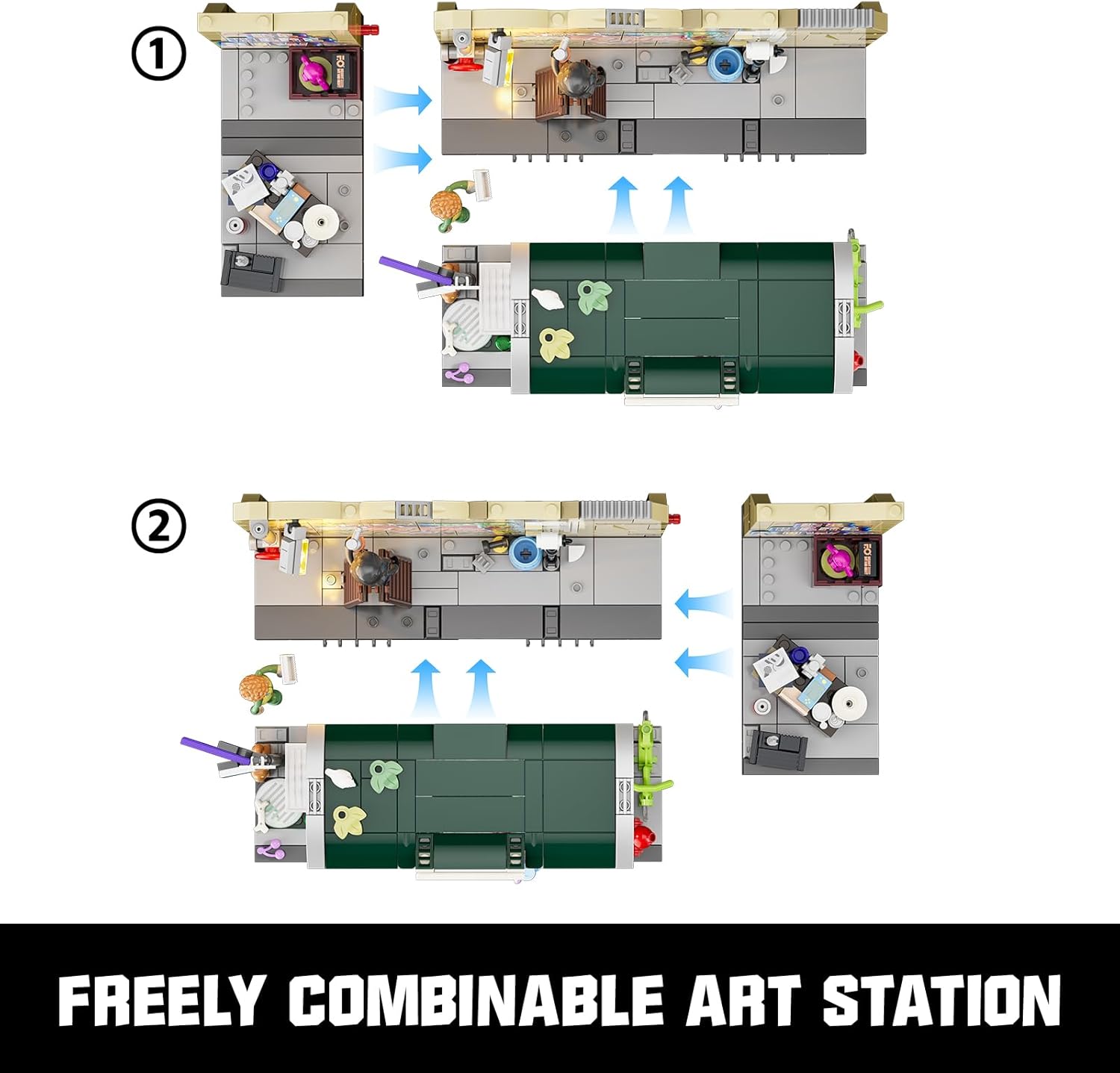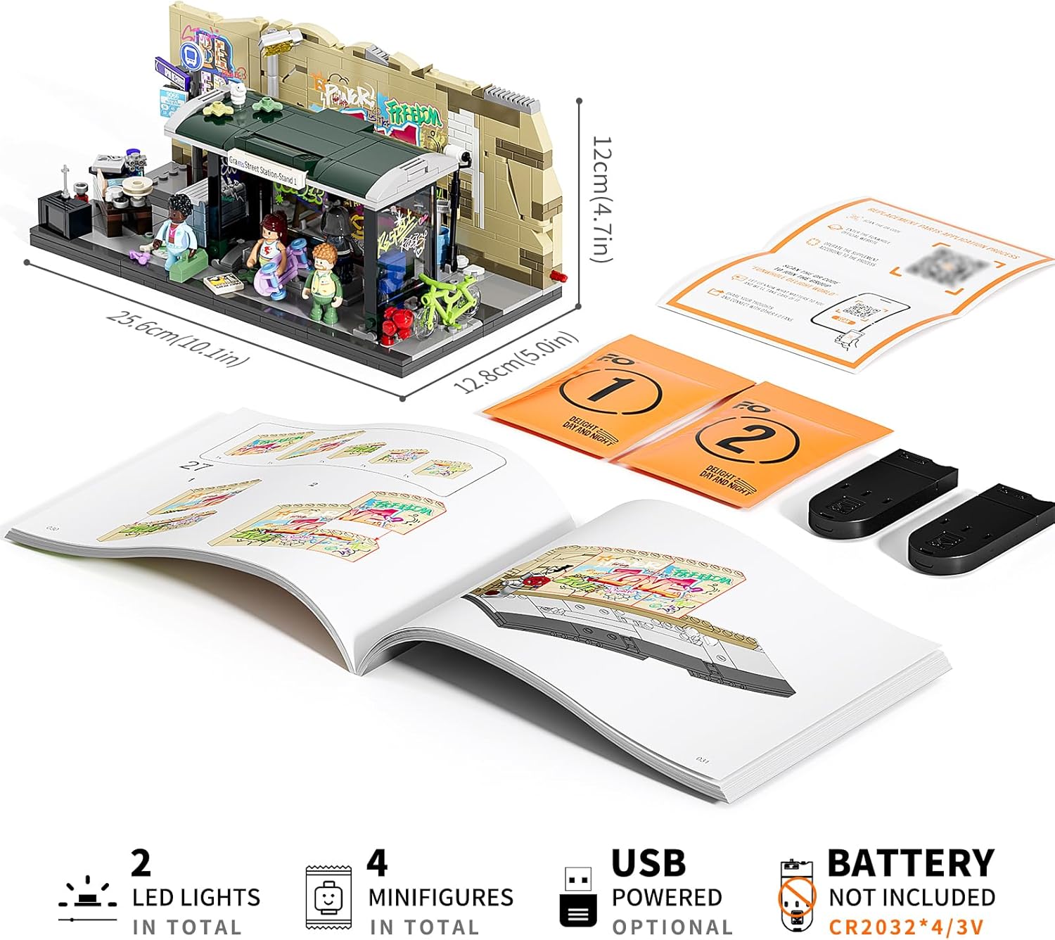 Das Set besteht aus drei kombinierbaren Modulen – Bushaltestelle, Graffiti-Wand und Flohmarktbereich – die sich flexibel platzieren und neu arrangieren lassen. Kleine Details wie Zeitungen auf dem Boden, Gullydeckel oder bemalte Mülleimer runden die Szene liebevoll ab. Zusätzlich dabei: charakterstarke Figuren im auffälligen Streetstyle sowie zwei Stickerbögen für individuelle Gestaltung. Mit 514 Teilen, 2 LED-Lichtern und klarer Anleitung ist das Set ideal für alle, die urbanen Realismus, Streetart und kreative Bauszenen lieben – ob als Einzelstück oder als Teil einer größeren Stadtlandschaft.