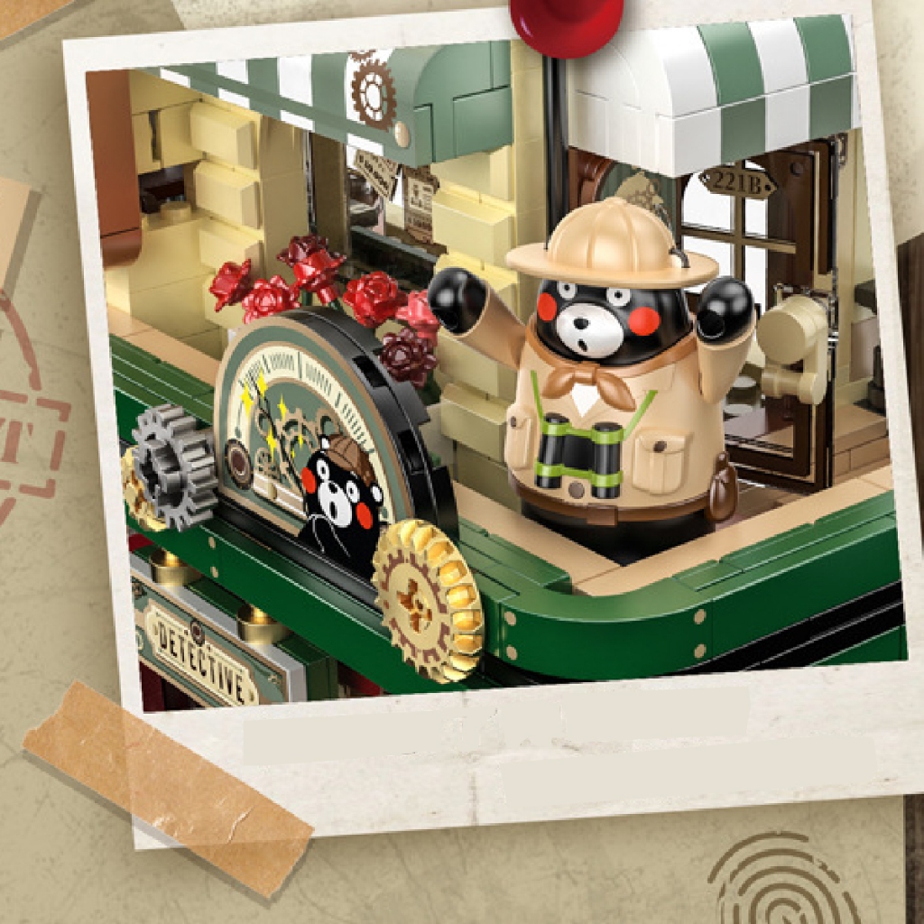 Die Panlos 880035 Kumamon™ Private Detective Society ist ein echter Hingucker, nicht zuletzt dank der gelungenen Farbauswahl. Die gelb-schwarzen Latten an der Fassade vermitteln den Eindruck eines leicht baufälligen Gebäudes. Zahlreiche Details wie Lampen, goldene Zahnräder oder das ausgefeilte Innenleben verfeinern das Design. Eine Außentreppe führt zum Balkon im Obergeschoss.
