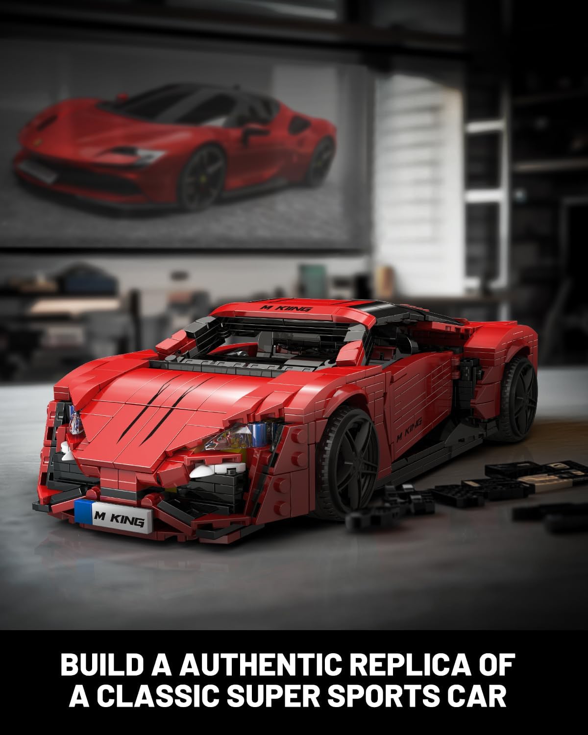 Funktionen: Türen, die Motorhaube und der Kofferraum lassen sich öffnen. Die ikonische rote Karosserie-Farbe, sowie die stylischen Felgen und die imposante Motorhaube runden den Gesamteindruck ab. Wie immer bei Mould King sind die Steine nach Bauabschnitten in Tüten vorsortiert und die Anleitung leicht verständlich.
