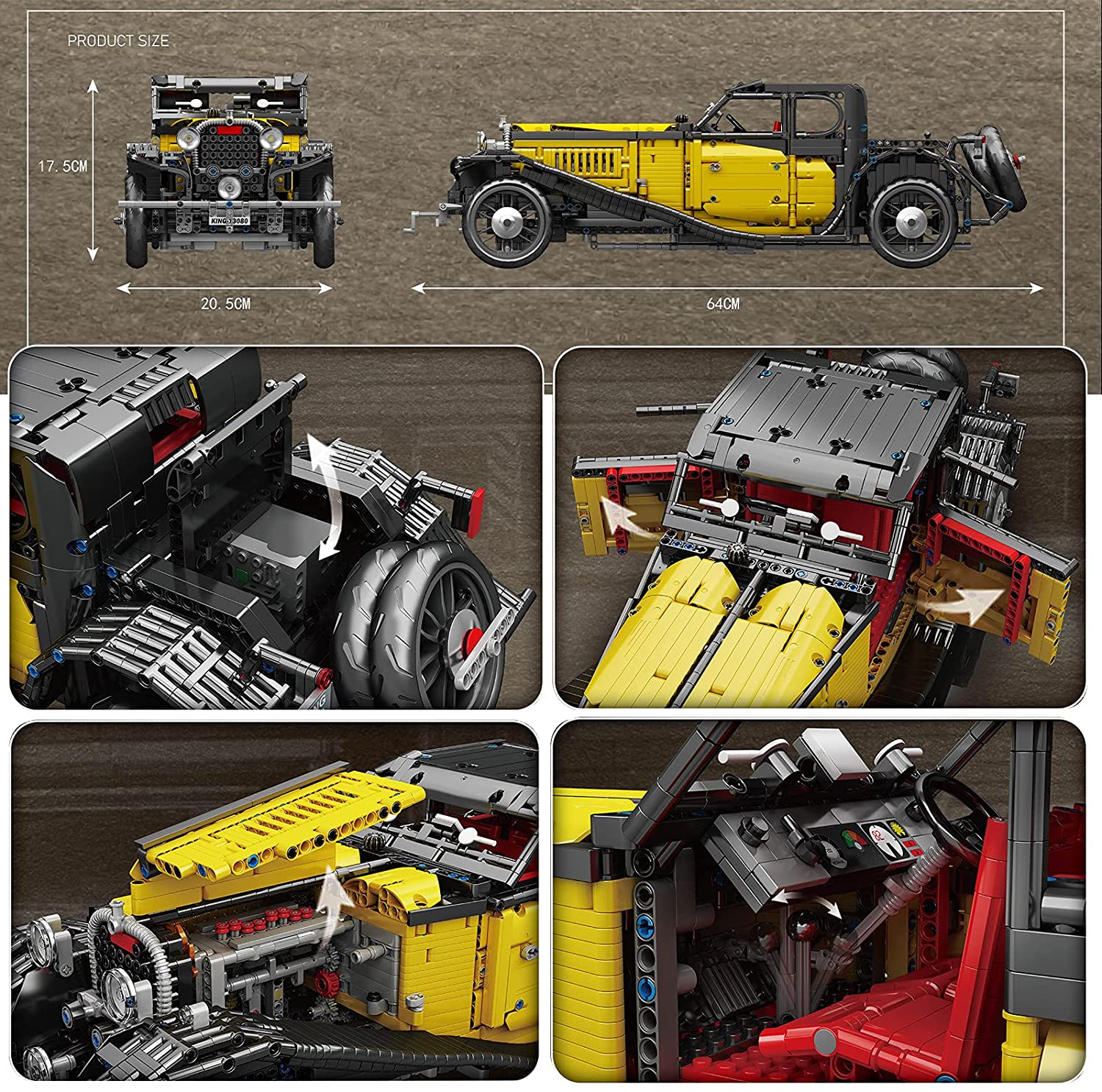 Erschaffe aus fast 4000 Teilen den beeindruckende Bentley Blowe. Ein ikonisches Rennfahrzeug mit präzise nachgebildetem Chassis, Karosserie. Motor, Getriebe, Tank und Antriebssystem. Das Modell hat einen Maßstab von 1:8 und ist ca. 70 cm lang.