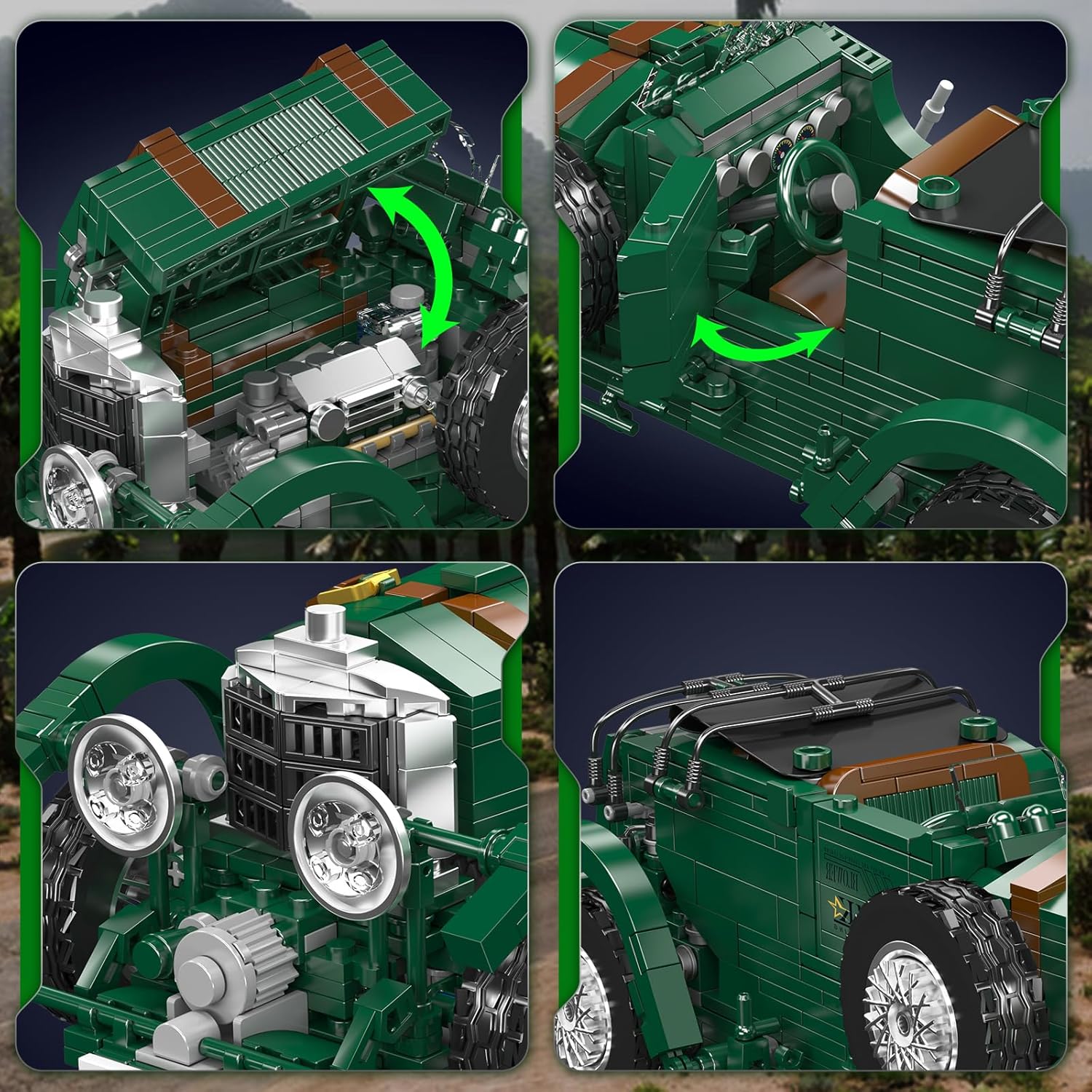 Formschönes Modell eines amerikanischen Oldtimers. In der Creativ Idea-Reihe von Mould King finden sich viele gelungenen Sportwagen und Oldtimer-Modellen fürs Regal oder die Vitrine. Vor allem der bekannte MOC-Designer Firas Abu-Jaber sorgt für ästhetisch ansprechenden Nachschub. Funktionen: Türen, die Motorhaube und der Kofferraum lassen sich öffnen, das Dach abnehmen. Die ikonische Karosserie-Farbe, sowie die stylischen Felgen und die imposante Motorhaube runden den Gesamteindruck ab. Wie immer bei Mould King sind die Steine nach Bauabschnitten in Tüten vorsortiert und die Anleitung leicht verständlich.