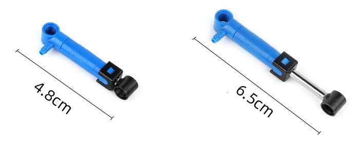 Pneumatik Pumpe von Mould King 1X6. 1 Anschluss für Druckluftschlauch 4mm Außendurchmesser (2mm Innendurchmesser) Länge: 4,8cm, ausgefahren: 6,5cm