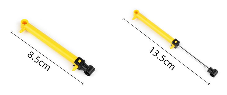Pneumatik Zylinder von Mould King 1 x 11L. 2 Anschlüsse für Druckluftschlauch 4mm Außendurchmesser (2mm Innendurchmesser) Die Länge des Zylinders: 8,5cm, ausgefahren: 13,5cm