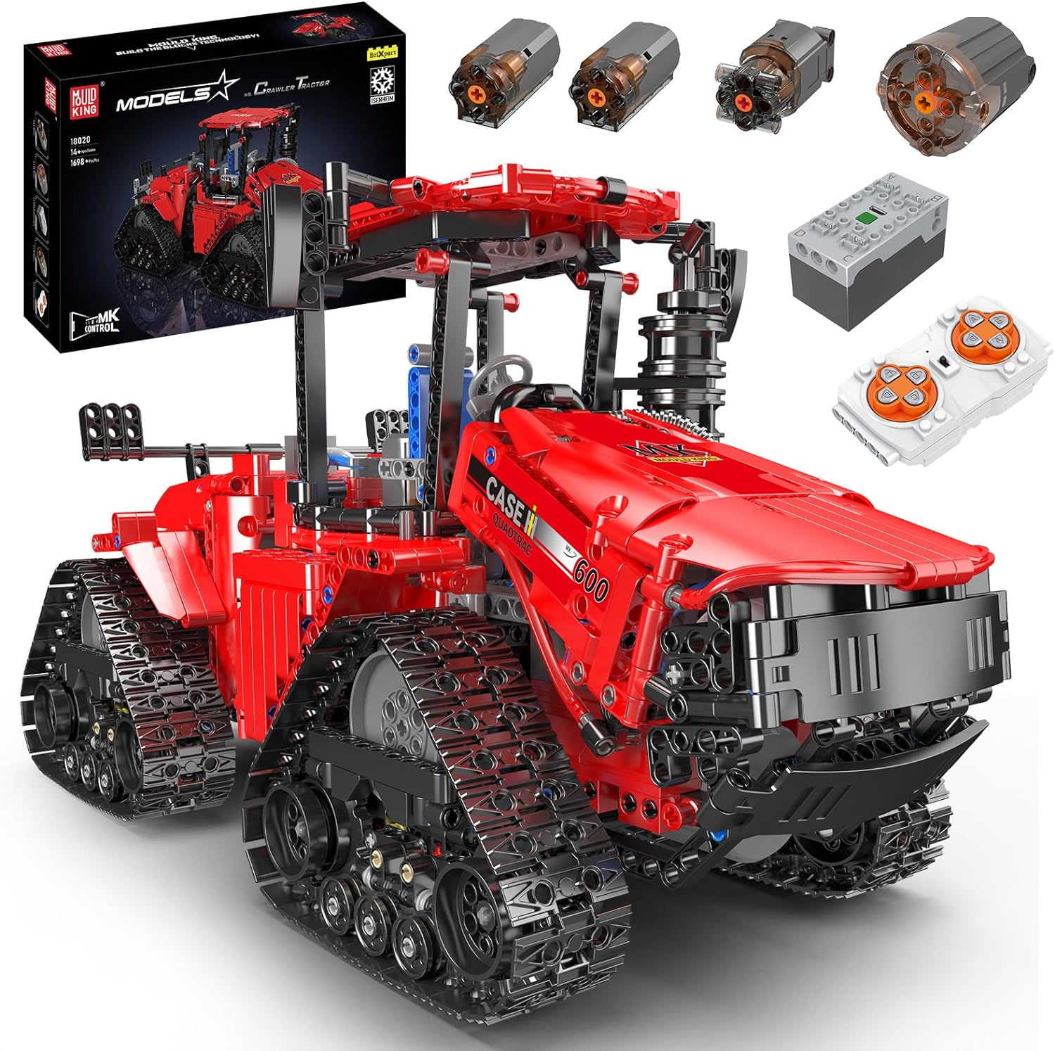 Motorisierter Raupenschlepper mit vielen Funktionen. Vorbild für das Set ist der Challenger der Firma Claas.