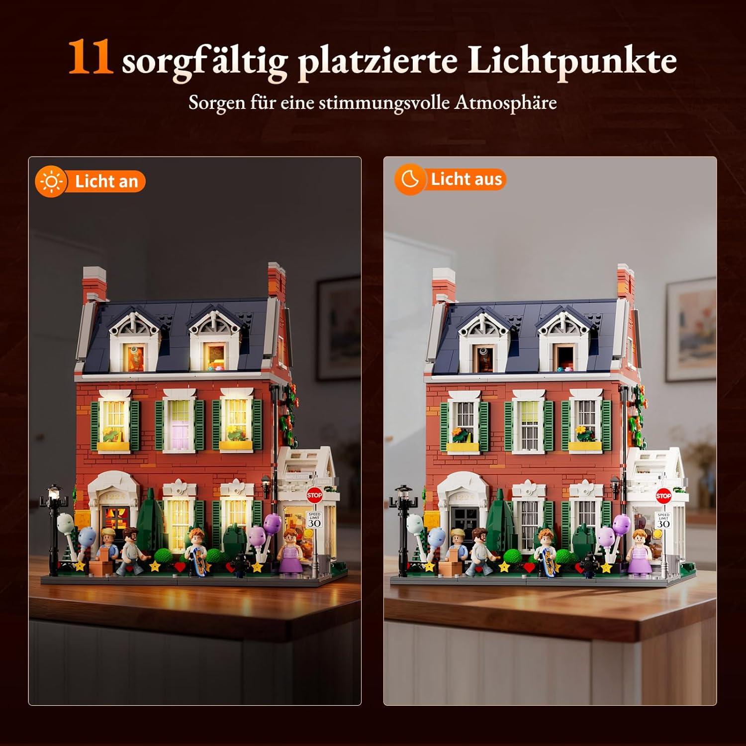Technisch setzt dieses Modell Maßstäbe für anspruchsvolle Baumeister. Durch die Verwendung hochwertiger GoBricks-Elemente ist ein präzises und frustrationfreies Bauerlebnis garantiert. Das Besondere: Das integrierte LED-System mit insgesamt 11 Lichtpunkten wird bereits während des Aufbaus installiert. Dank innovativer Kontakt-Pins zwischen den Etagen bleibt die Modularität voll erhalten – Stockwerke lassen sich abnehmen, ohne mühsam Kabel trennen zu müssen. Ein besonderes Highlight für Detailverliebte sind die 52 bedruckten Elemente; auf lästige Aufkleber wird hier komplett verzichtet.