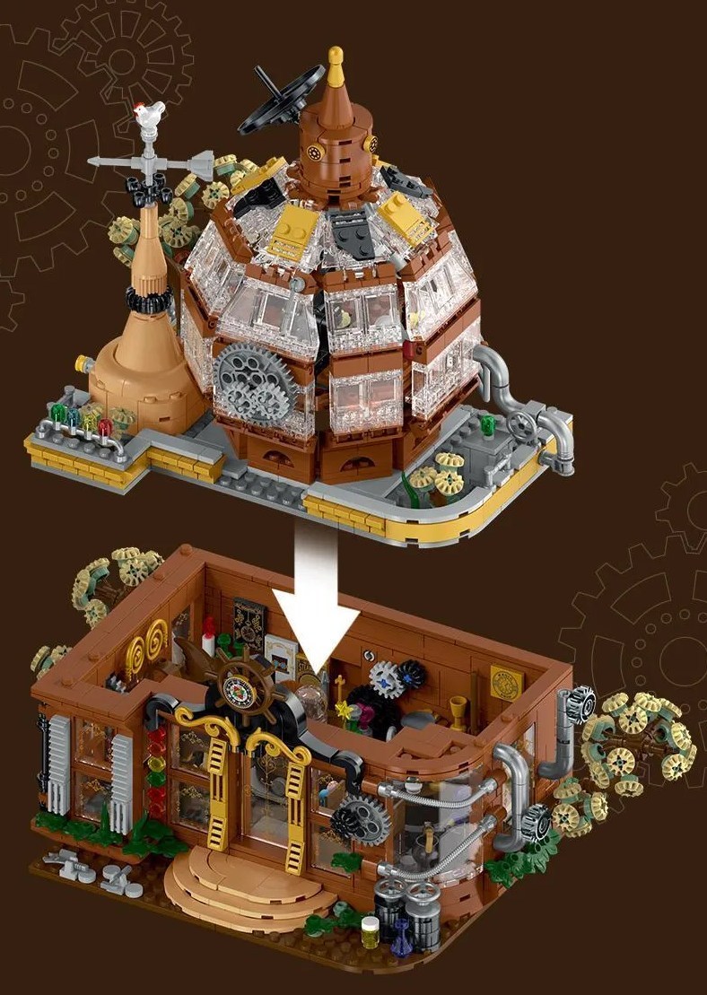 Mit diesem Zauberladen taucht Mork in die Steampunk-Ära ein. Steampunk ist ein charakteristisches Thema in der Fantasy-Literatur, das den Reiz von Science-Fiction und Fantasy miteinander verbindet. Dementsprechend bilden die fast 1900 Klemmbausteine einen mechanisch-industriellen Laden für astronomische, chemische und mineralische Forschungsmaterialien mit vielen tollen Features. Anspruchsvolles Set, nicht für Anfänger geeignet.