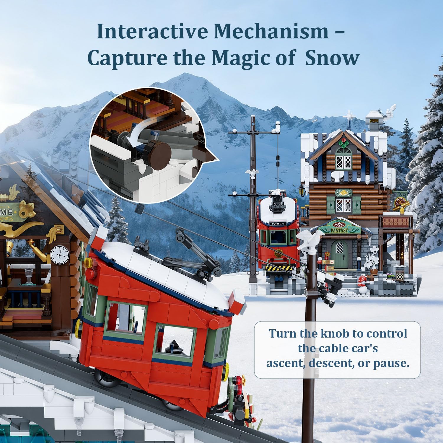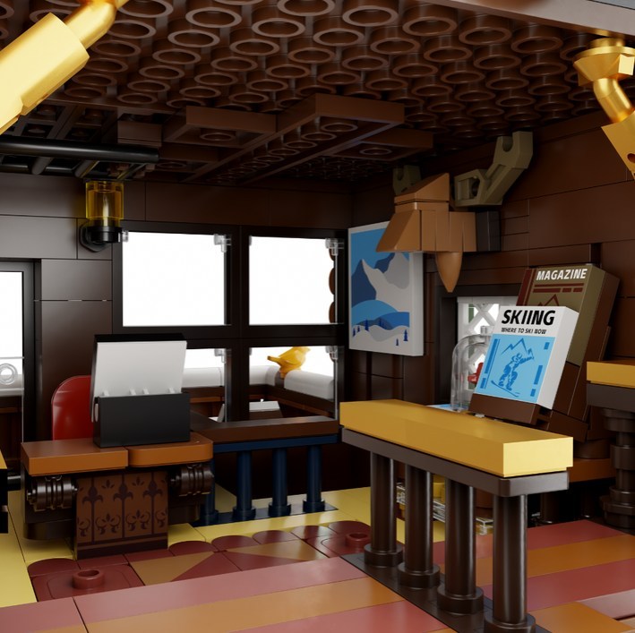 Das Bauerlebnis ist ebenso abwechslungsreich wie detailverliebt: Über 3.000 Teile formen Stockwerk für Stockwerk eine urige Hütte mit Terrasse und Fernrohr, gemütlichem Schlafzimmer und halboffener Rezeption. Ein Highlight ist die funktionierende Seilbahn, die sich per Drehknopf bewegen lässt und echtes Technik-Feeling ins Modell bringt. Dazu kommen liebevolle Extras wie ein Hot-Spring-Pool, ein Eishockeyfeld und der verborgene Zugang zu einer geheimen Eishöhle. Mit den 5 enthaltenen Figuren erwacht die Szene richtig zum Leben – vom Skiurlauber bis zum entspannten Badegast.