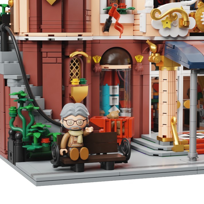 Das Set begeistert durch eine Fülle kreativer Bautechniken und kleiner Überraschungen. Über 2.850 Teile formen das modulare Gebäude, dessen Stockwerke sich abnehmen lassen, um Einblicke ins Innere zu gewinnen. Im Erdgeschoss warten winzige Miniaturen und Spielwaren, die als Anspielungen auf frühere Pantasy-Sets dienen. Im Obergeschoss lädt ein nostalgischer Arcade-Raum zum Staunen ein, während die Dachterrasse mit einer klassischen Wippe für interaktive Momente sorgt. Besonders charmant ist die bewegliche Nussknacker-Gruppe in der Fassade – ein technisches Detail, das den Bau abwechslungsreich und das fertige Modell lebendig macht. Fünf enthaltene Figuren beleben zusätzlich die Szene, sodass man das Café nicht nur als Display, sondern auch als kleine Spielwelt nutzen kann.