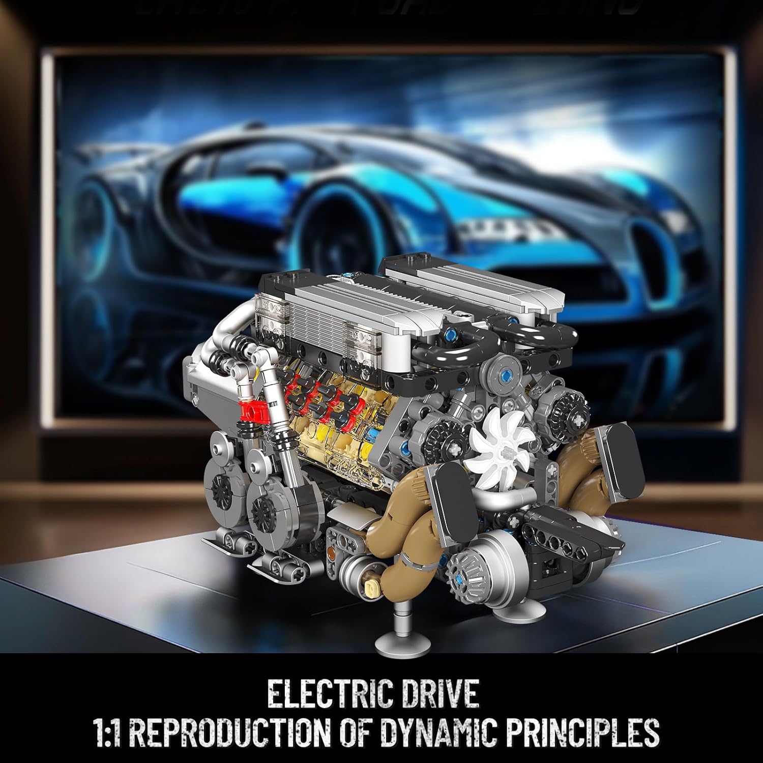 Motorgetriebenes Model eines W16-Zylinder Verbrennungsmotor. Beinhaltet einen L-Motor und eine Batteriebox.