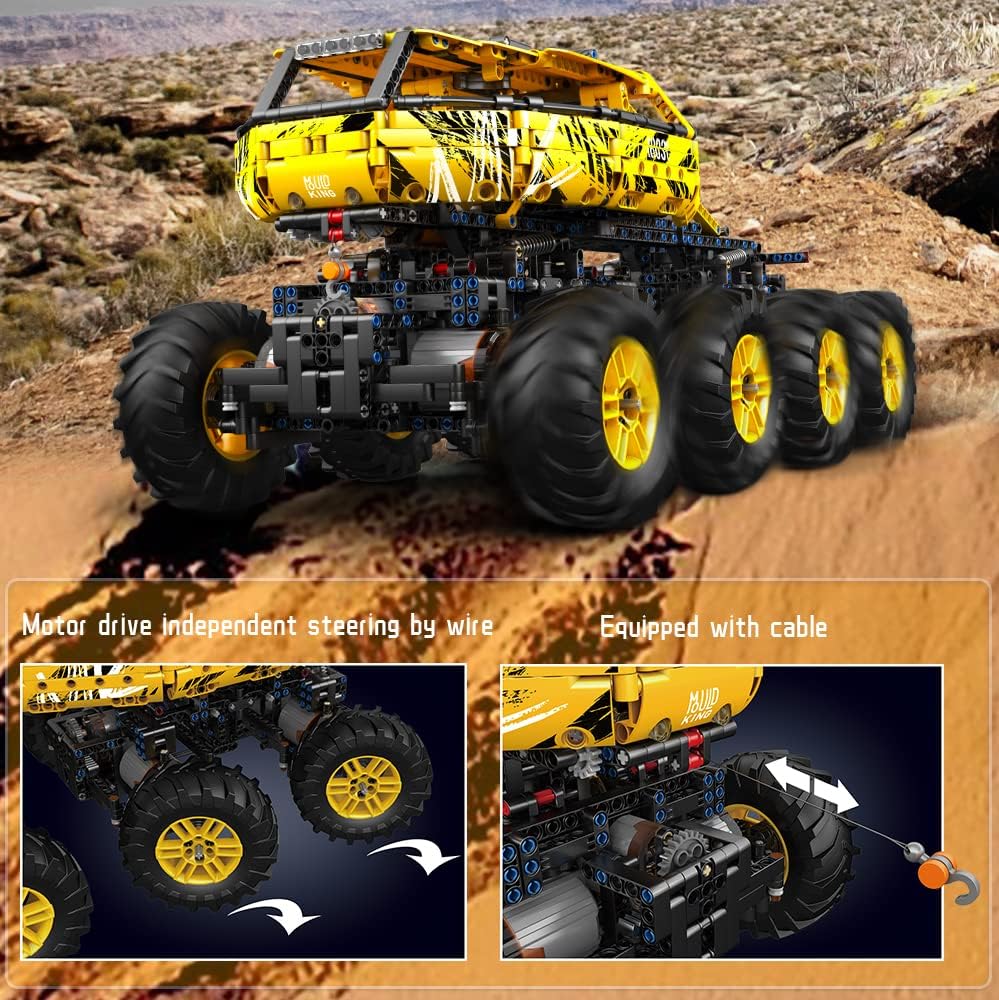 Der Truck ist mit den fast 11'000 Teilen und 19 Motoren eines der grössten Technic Sets auf dem Markt. Der Wagen kann per Fernbedienung oder App gesteuert werden (8x M-Motor, 4x L-Motor, 4x XL Motor, 3x Servo, 3x Akkubox + 1x Fernbedienung). Neue, überarbeitete S-Version. Die Kabine wird pneumatisch nach vorne gekippt. Der Ausleger kann ausgefahren, angehoben und abgesenkt, sowie um 180° gedreht werden. Sowie viele weitere tolle Funktionen - eben ein echtes Technic-Set.Nur etwas für fortgeschrittene Baumeister.