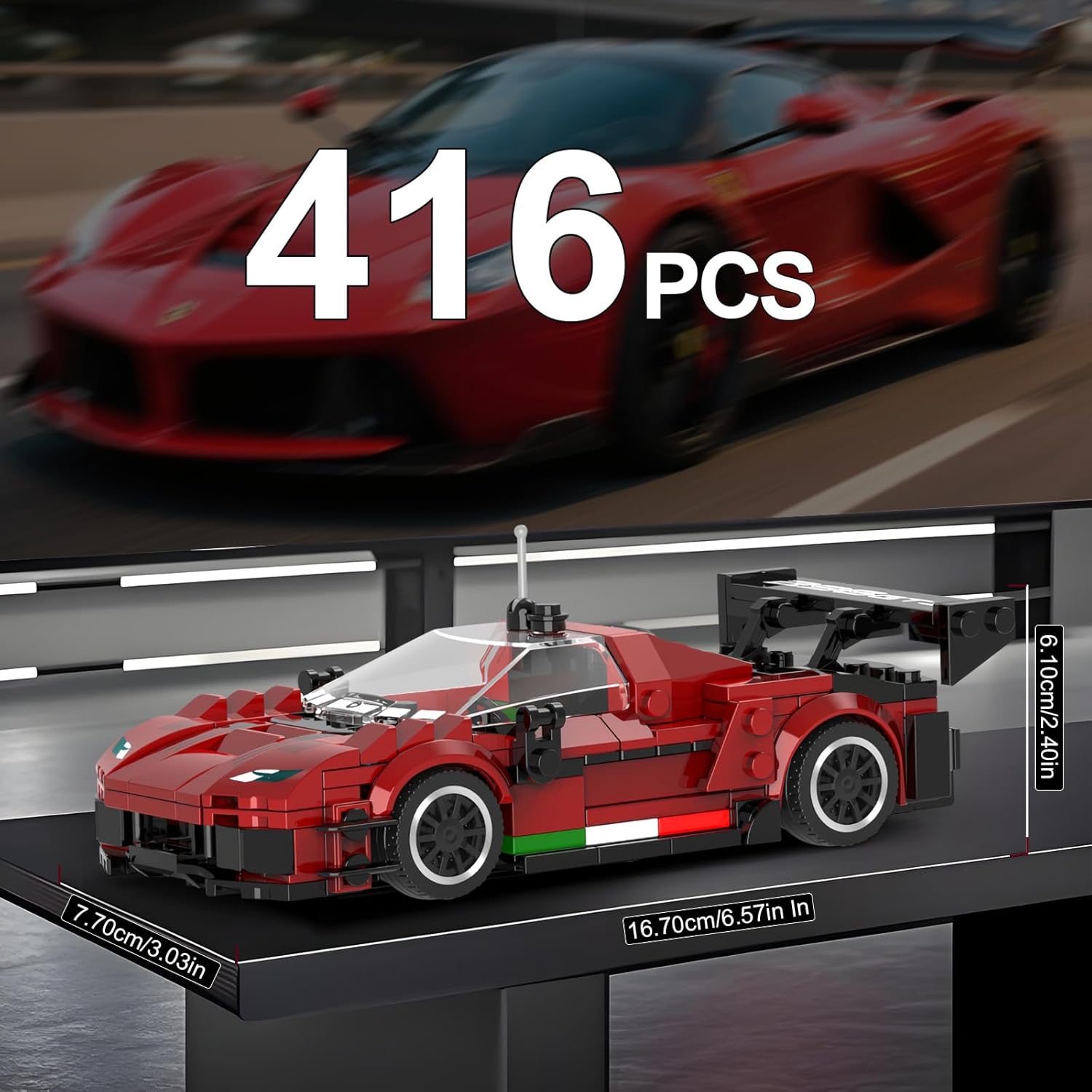 Dieser Rennwagen mit 8 Noppen Breite lässt Klemmbausteinmeister einen der exklusivsten Flitzer der Welt sammeln. Baue und entdecke diese detailgetreue Nachbildung eines Ferrari F488 GT3. Faszinierend aus jedem Blickwinkel und geeignet zum Ausstellen oder für spannende Rennen! Unter der Model S Serie von Mould King versteckt sich ein wahrer Fundus an gelungenen kleinen Sportwagen-Modellen. Faszinierend aus jedem Blickwinkel und geeignet zum Ausstellen oder für spannende Rennen! Inklusive bebaubarer Kunststoff-Vitrine (Noppen an Boden und Deckel )! Set enthält Aufkleber. Die Serie umfasst weitere Modelle, alle mit dazugehöriger Sammelvitrine, die sich auch stapeln lässt.