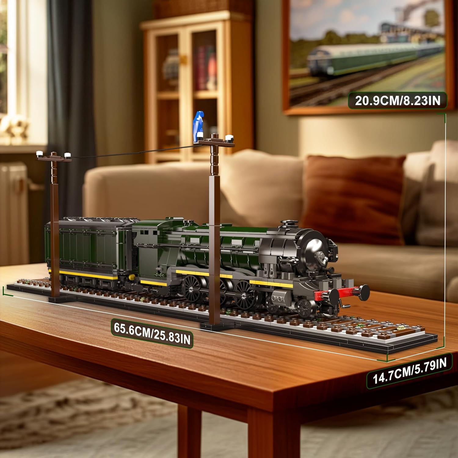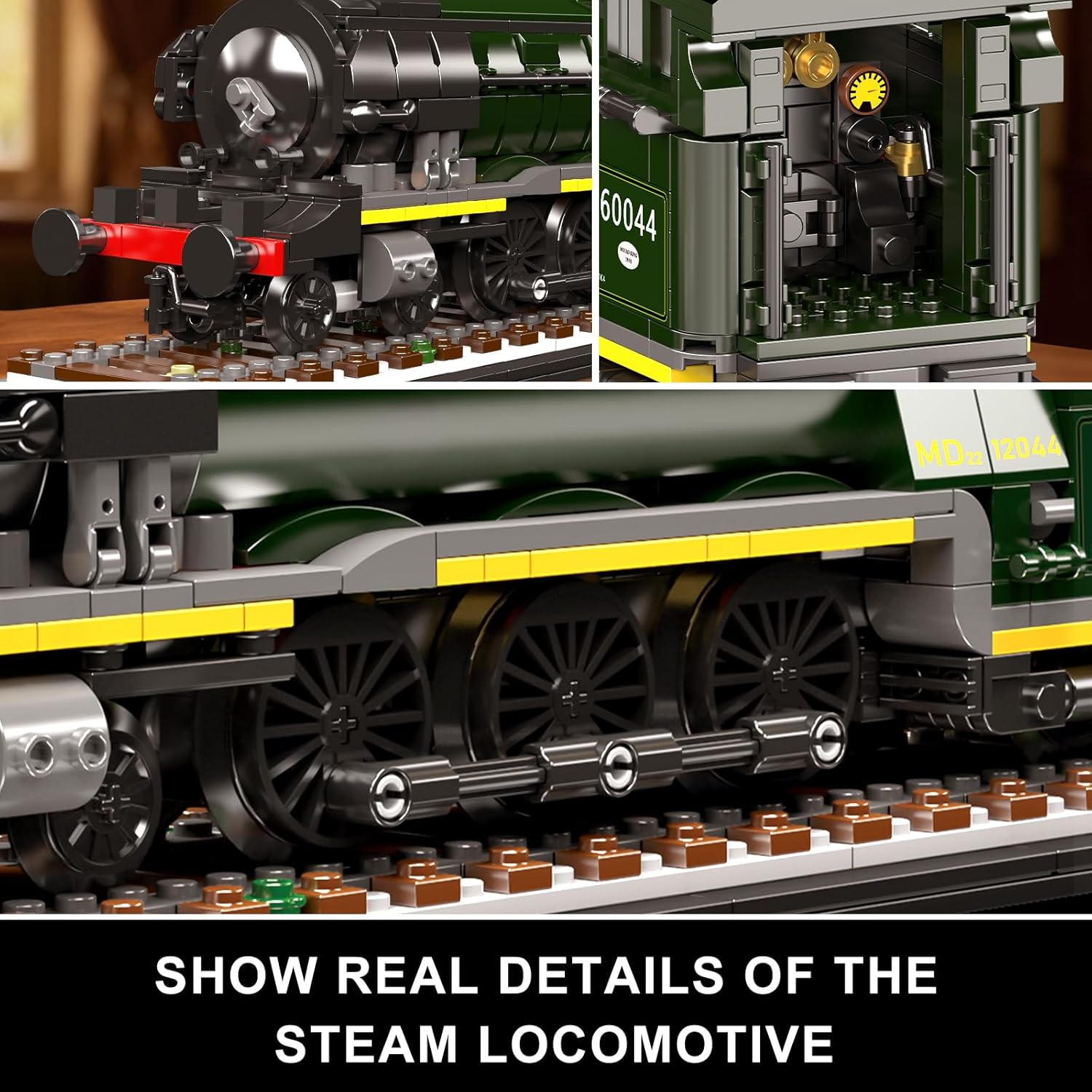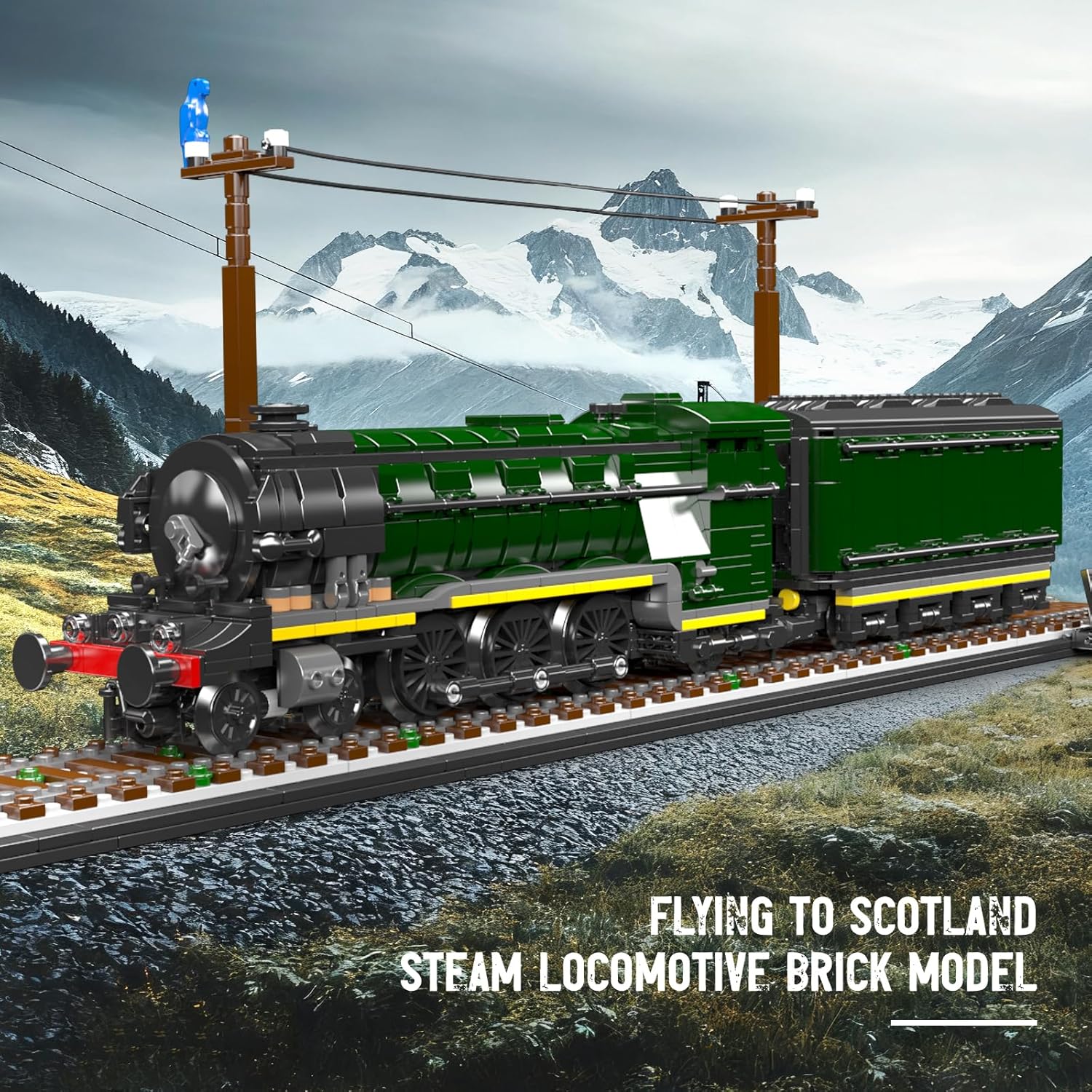 Erlebe das goldene Zeitalter der britischen Eisenbahnen mit der Mould King Flying Scotsman Dampflokomotive, einer atemberaubenden, aus Klemmbausteinen gebauten Hommage an eine der legendärsten Lokomotiven der Geschichte – die LNER Class A3 4472 Flying Scotsman.
