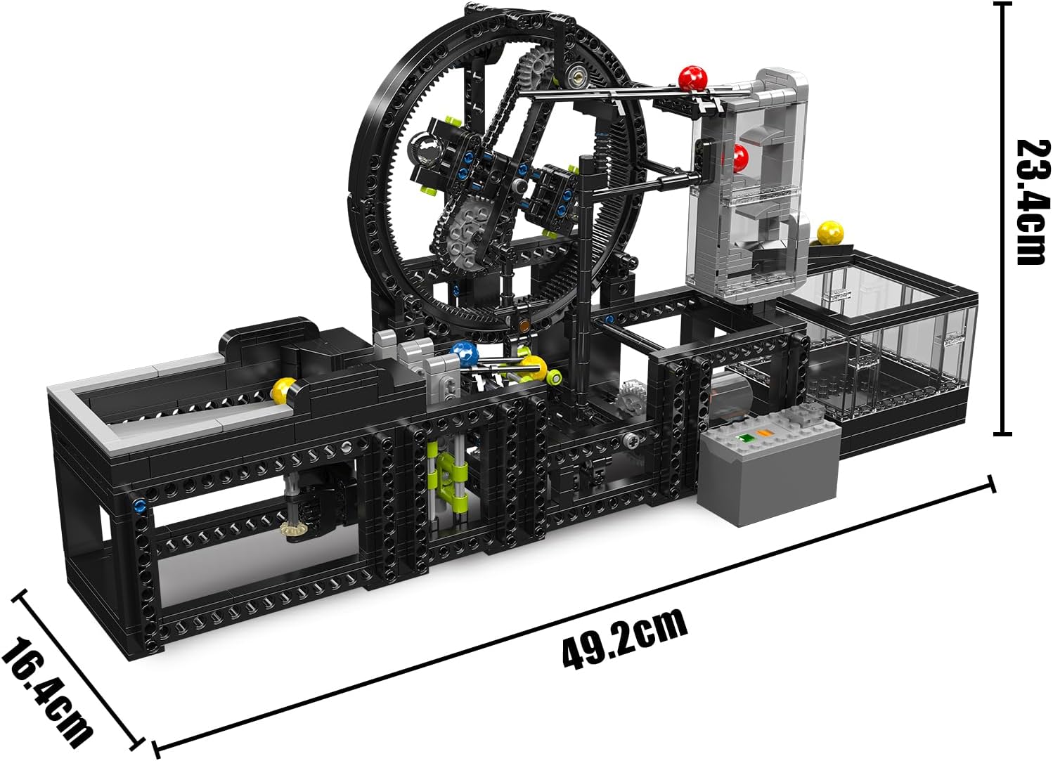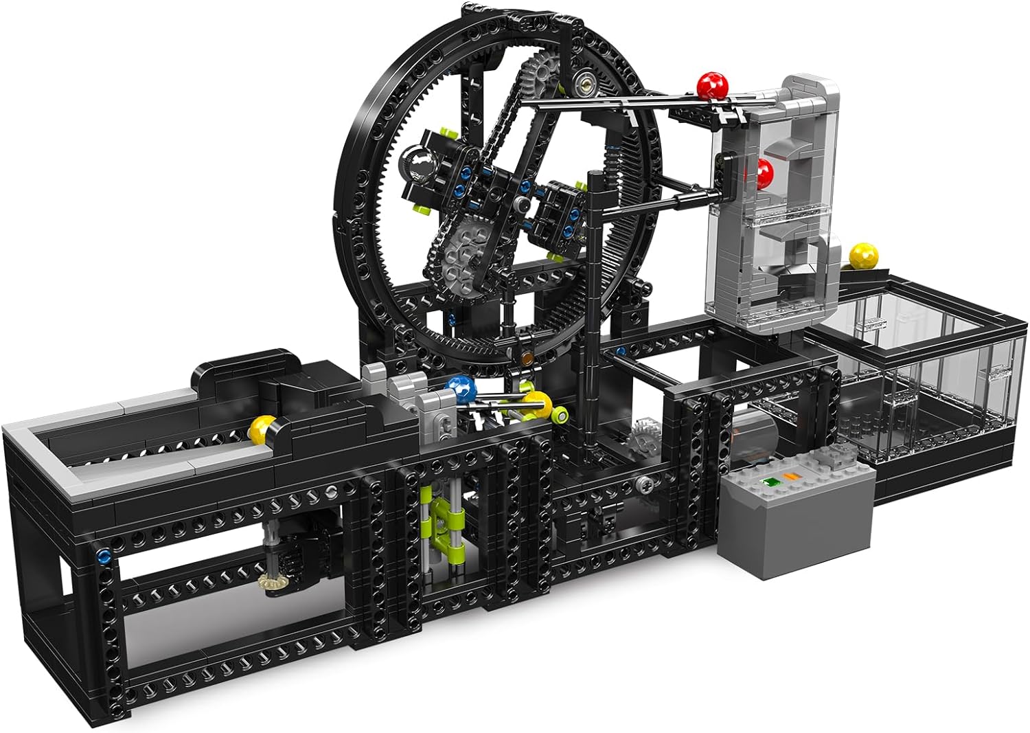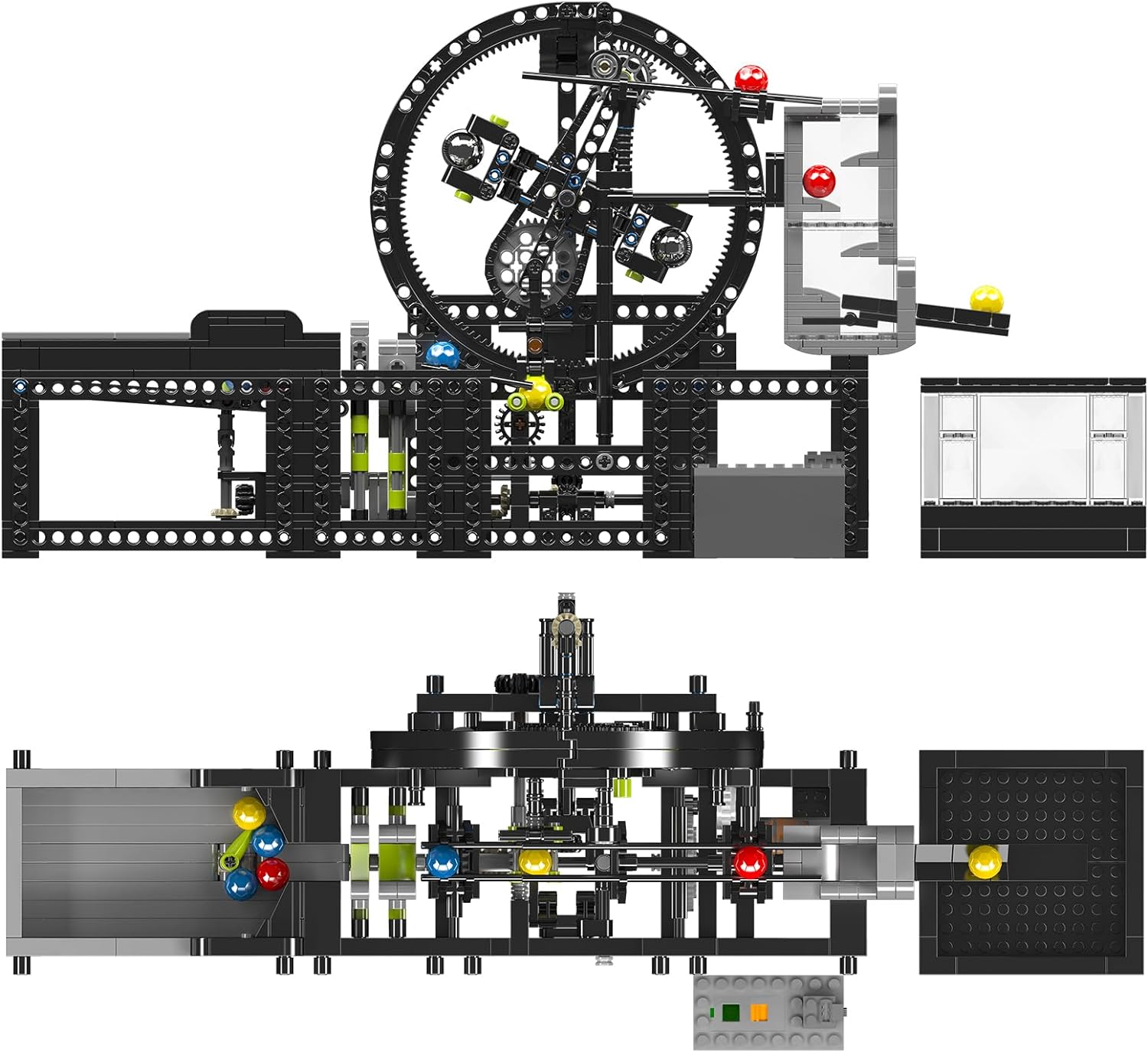 In Kooperation mit dem MOC-Designer Berthil (Brickpolis) wurde dieser GBC-Stepper (Great Ball Contraption; dt.: Murmelbahn) in Form eines Rotationslifts umgesetzt. Angetrieben wird das Set von einem M-Motor mit Batteriebox.