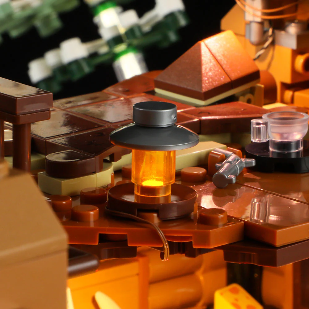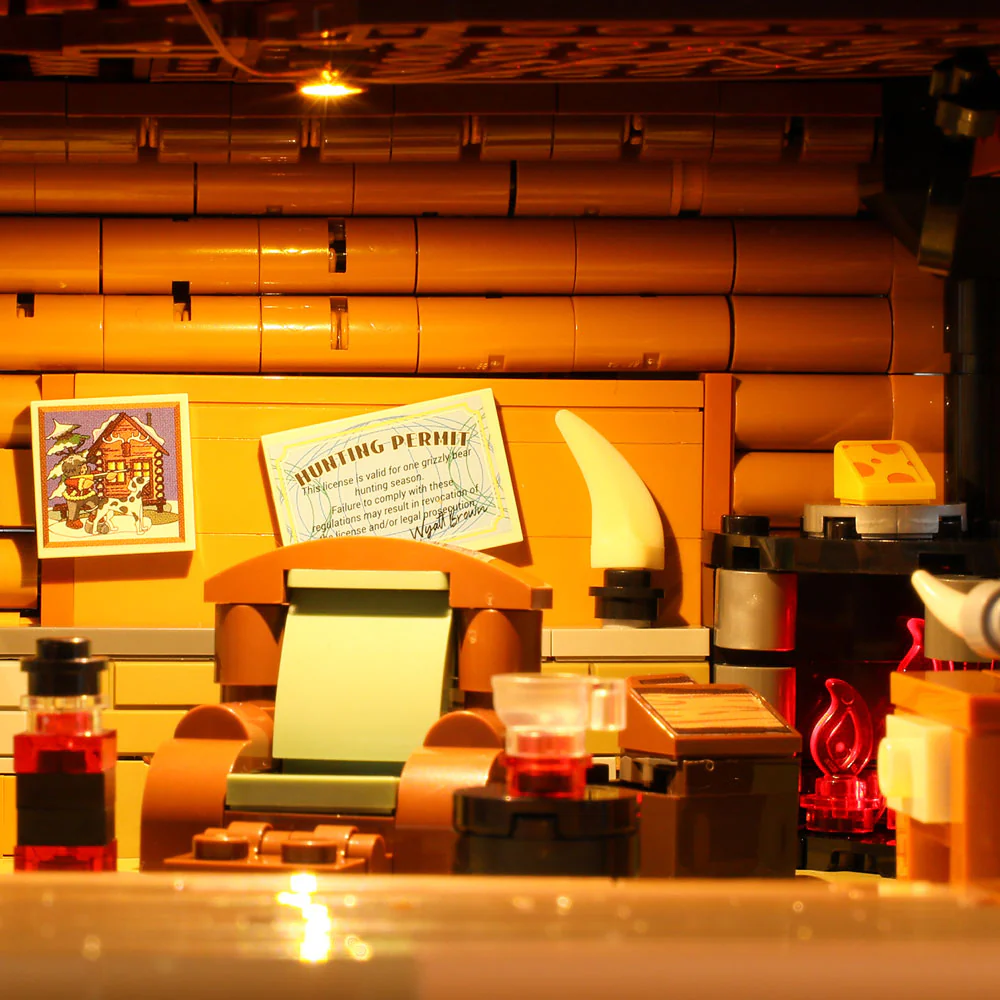 Mit 12 raffiniert beleuchteten Elementen bringt dieses Set echtes Hüttenfeeling in dein Regal: flackerndes Kaminfeuer, rustikale Öllampen, Außenfackeln – alles perfekt eingebunden durch 5 LED-Stränge und versteckter Stromversorgung. So wird der Aufbau zur atmosphärischen Erlebnisreise.