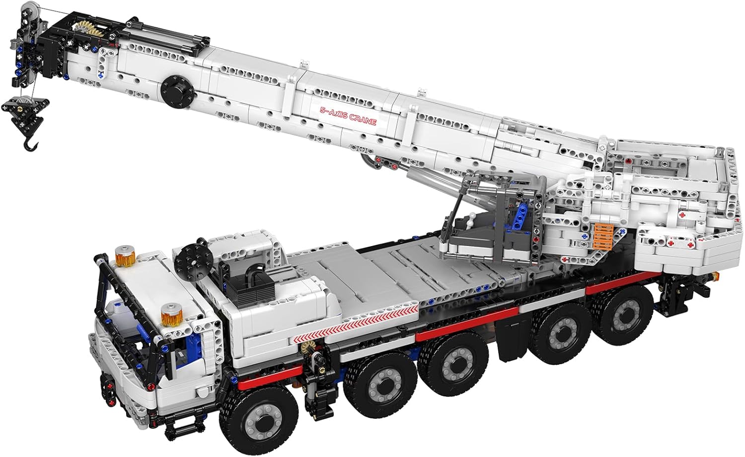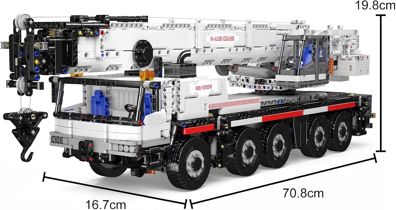 Der Truck ist mit den fast 11'000 Teilen und 19 Motoren eines der grössten Technic Sets auf dem Markt. Der Wagen kann per Fernbedienung oder App gesteuert werden (8x M-Motor, 4x L-Motor, 4x XL Motor, 3x Servo, 3x Akkubox + 1x Fernbedienung). Neue, überarbeitete S-Version. Die Kabine wird pneumatisch nach vorne gekippt. Der Ausleger kann ausgefahren, angehoben und abgesenkt, sowie um 180° gedreht werden. Sowie viele weitere tolle Funktionen - eben ein echtes Technic-Set.Nur etwas für fortgeschrittene Baumeister.