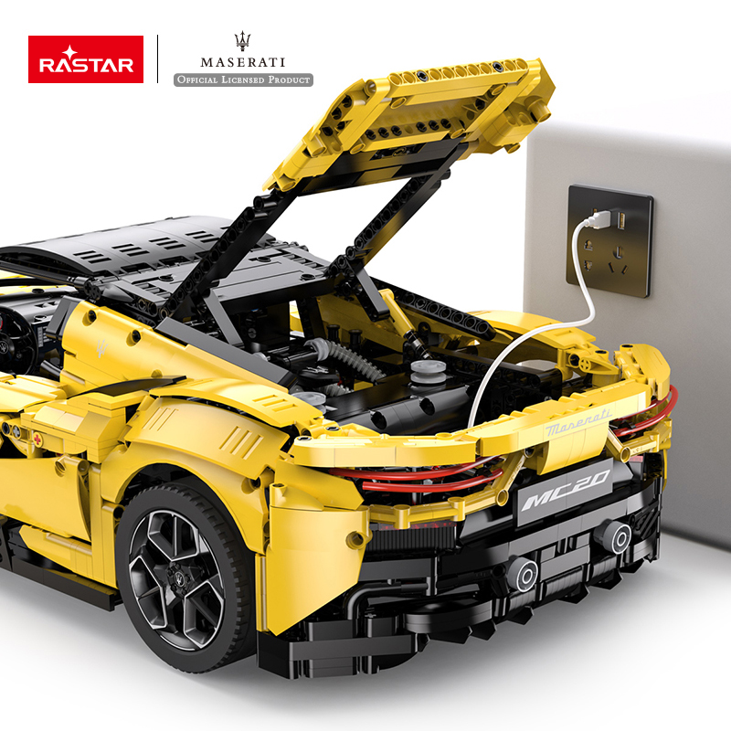 Lizensiert von Maserati! Der Maserati MC20 von Rastar ist ein wirklich gelungener Modellentwurf in Gelb/Schwarz mit funktionierender Dämpfung, schönen Felgen und vielen Funktionen. Aufgebaut ist der Maserati gut 58 cm Lang und 28 cm Breit. Static Version ohne Power Functions.
