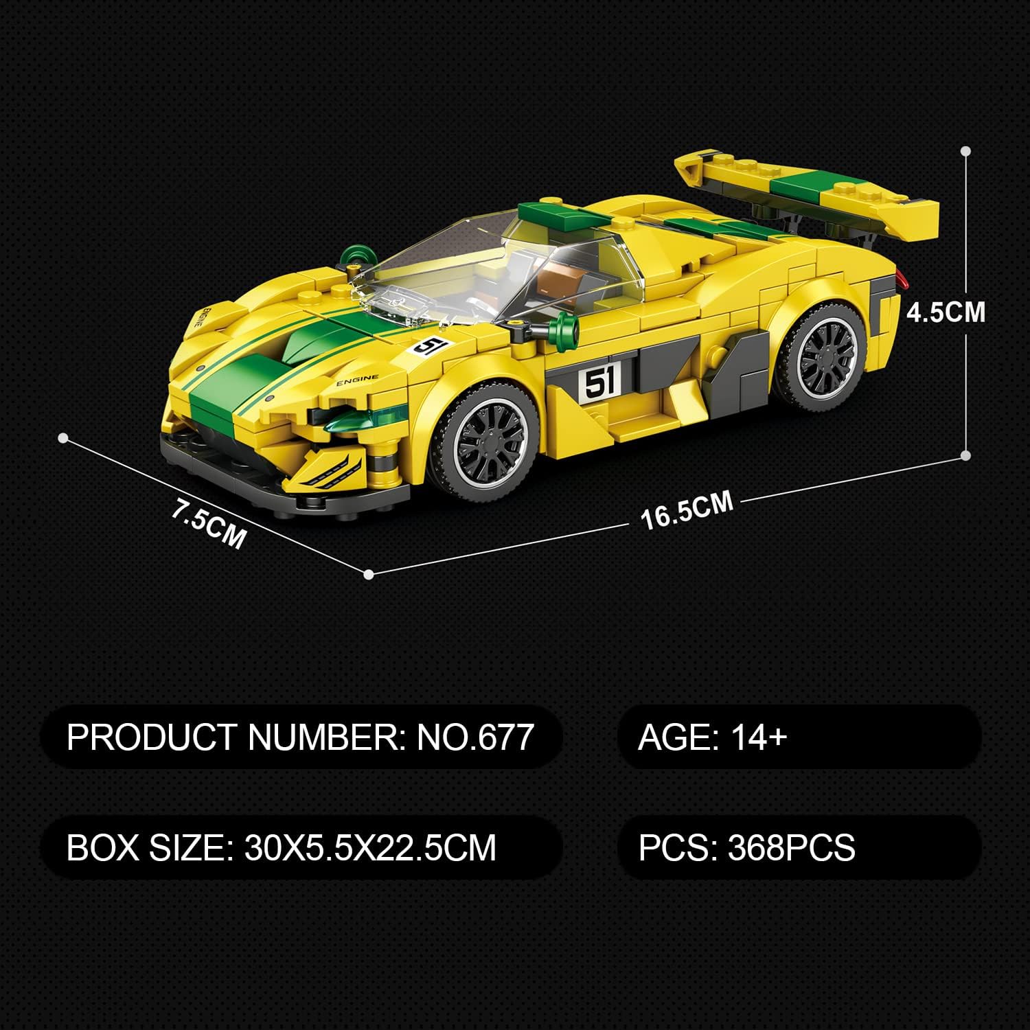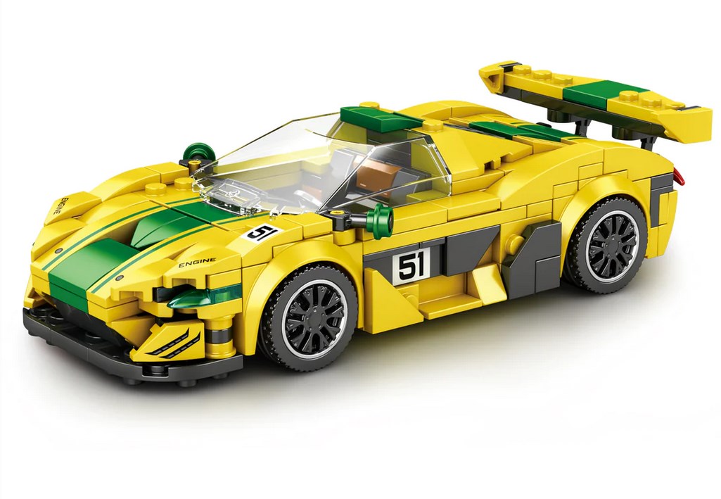 Kleiner Sportwagen im Maßstab 1:24, ein gelber Flitzer aus aus Frankreich. Schwrze Felgen und eine detaillierte Umsetzung der Vorlage. Die Steine-Qualität ist durchgehend gut, die Anleitung einfach aufgebaut und die Teile in nummerierte Tüten zu den jeweiligen Bauabschnitten sortiert. Ergänze Deine Miniatur-Auto-Sammlung mit diesem tollen Modell - passt auch in die Display-Box von Mould King.