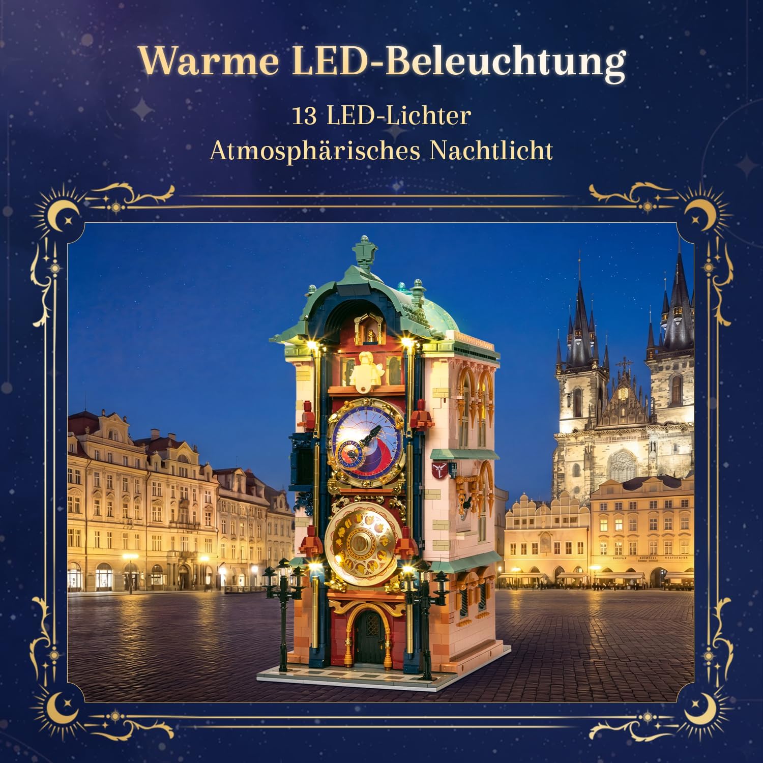 Reise zurück ins Jahr 1410 – direkt auf den Altstädter Ring in Prag! Die Orloj ist nämlich weit mehr als nur eine Uhr: Sie ist ein echtes mechanisches Wunderwerk, das seit Jahrhunderten Wissenschaft, Astrologie und Kunst miteinander verbindet. Mit diesem Set holst du dir das drittälteste astronomische Uhrwerk der Welt in beeindruckender Detailtiefe nach Hause – fast so, als hättest du ein Stück Prag im Wohnzimmer stehen. om geheimnisvollen Astrolabium bis hin zu den filigranen gotischen Steinmetzarbeiten: Dieses Modell fängt die besondere Atmosphäre der tschechischen Metropole perfekt ein. Kurz gesagt: ein bisschen Geschichte, ein Hauch Magie und ganz viel Bau-Spaß – ganz ohne Zeitreise-Stress.