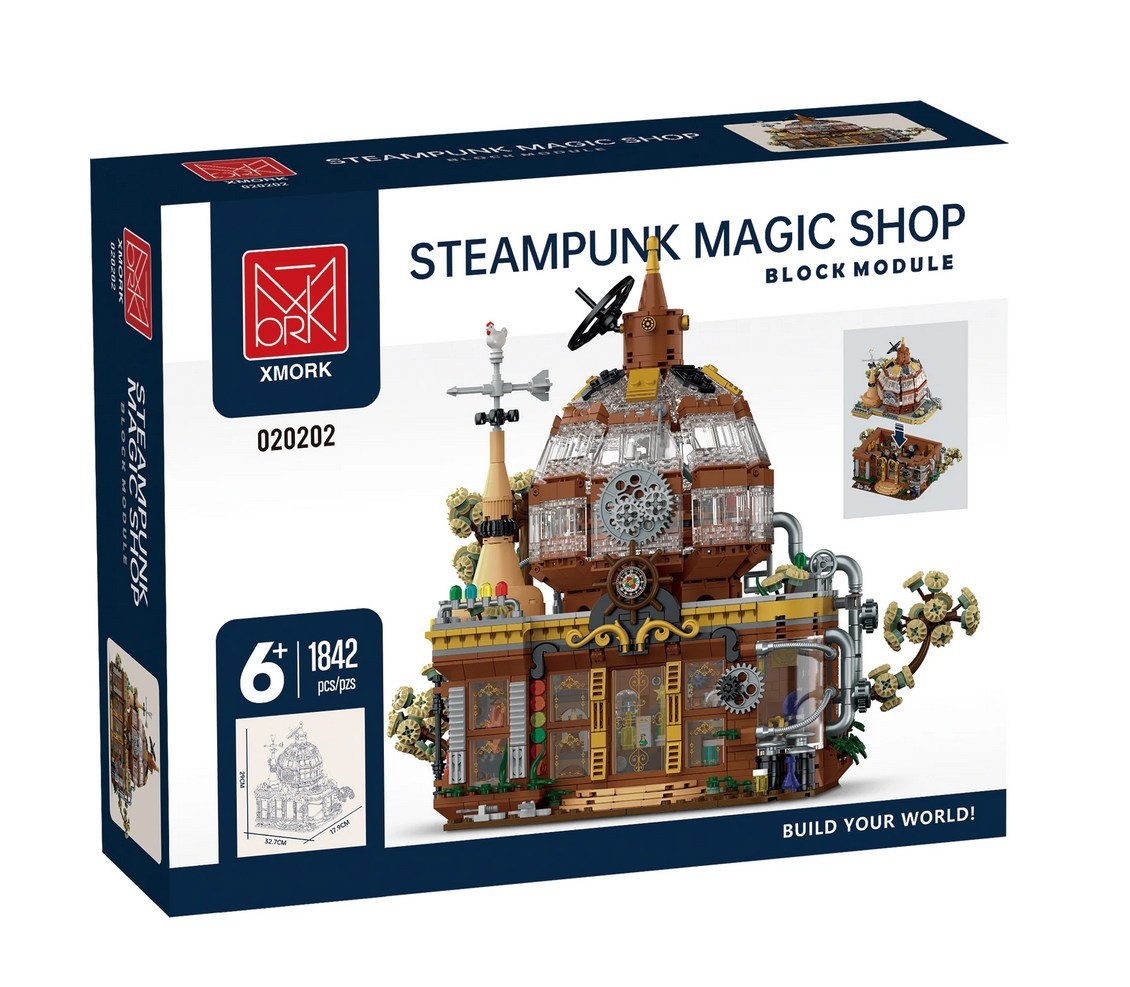 Mit diesem Zauberladen taucht Mork in die Steampunk-Ära ein. Steampunk ist ein charakteristisches Thema in der Fantasy-Literatur, das den Reiz von Science-Fiction und Fantasy miteinander verbindet. Dementsprechend bilden die fast 1900 Klemmbausteine einen mechanisch-industriellen Laden für astronomische, chemische und mineralische Forschungsmaterialien mit vielen tollen Features. Anspruchsvolles Set, nicht für Anfänger geeignet.