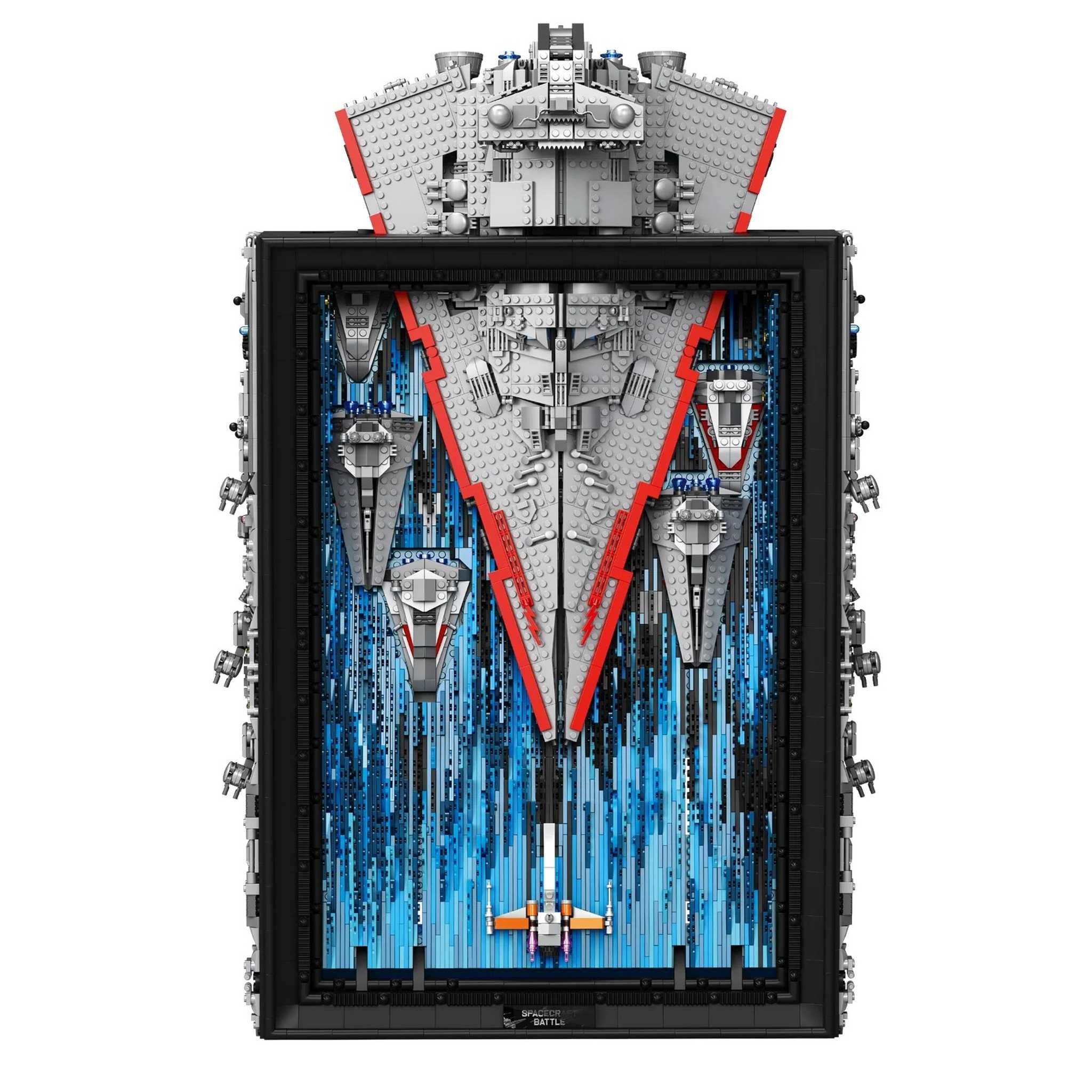 Innovatives 3D-Rahmendesign: Tauche mit diesem sorgfältig gestalteten 3D-Rahmen in ein dynamisches visuelles Erlebnis ein. Sein mehrschichtiges Layout fängt die Intensität einer galaktischen Schlacht ein. Jede Schicht baut auf der nächsten auf und verleiht Ihrer Einrichtung Tiefe und ein spürbares Gefühl von Action.