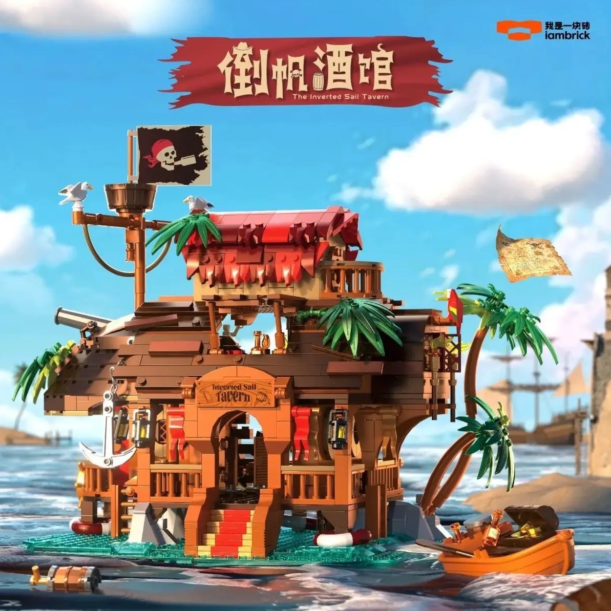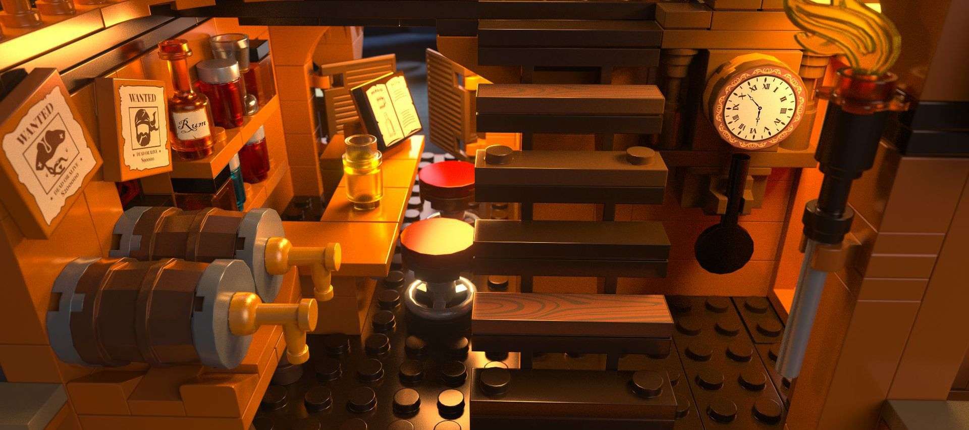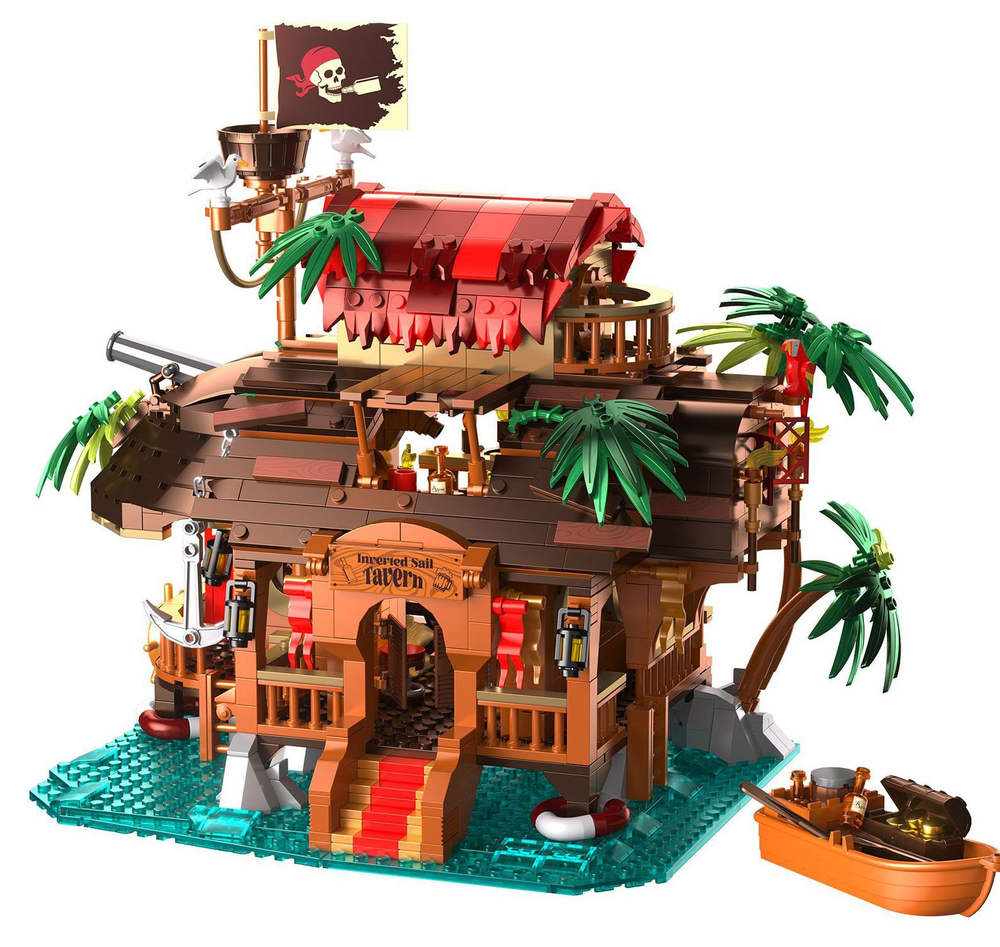 Da steht jeder Klemmbaustein-Fan Kopf - Piraten-Taverne im umgedrehten Piratenschiff, mit vielen Details und Beleuchtung.
