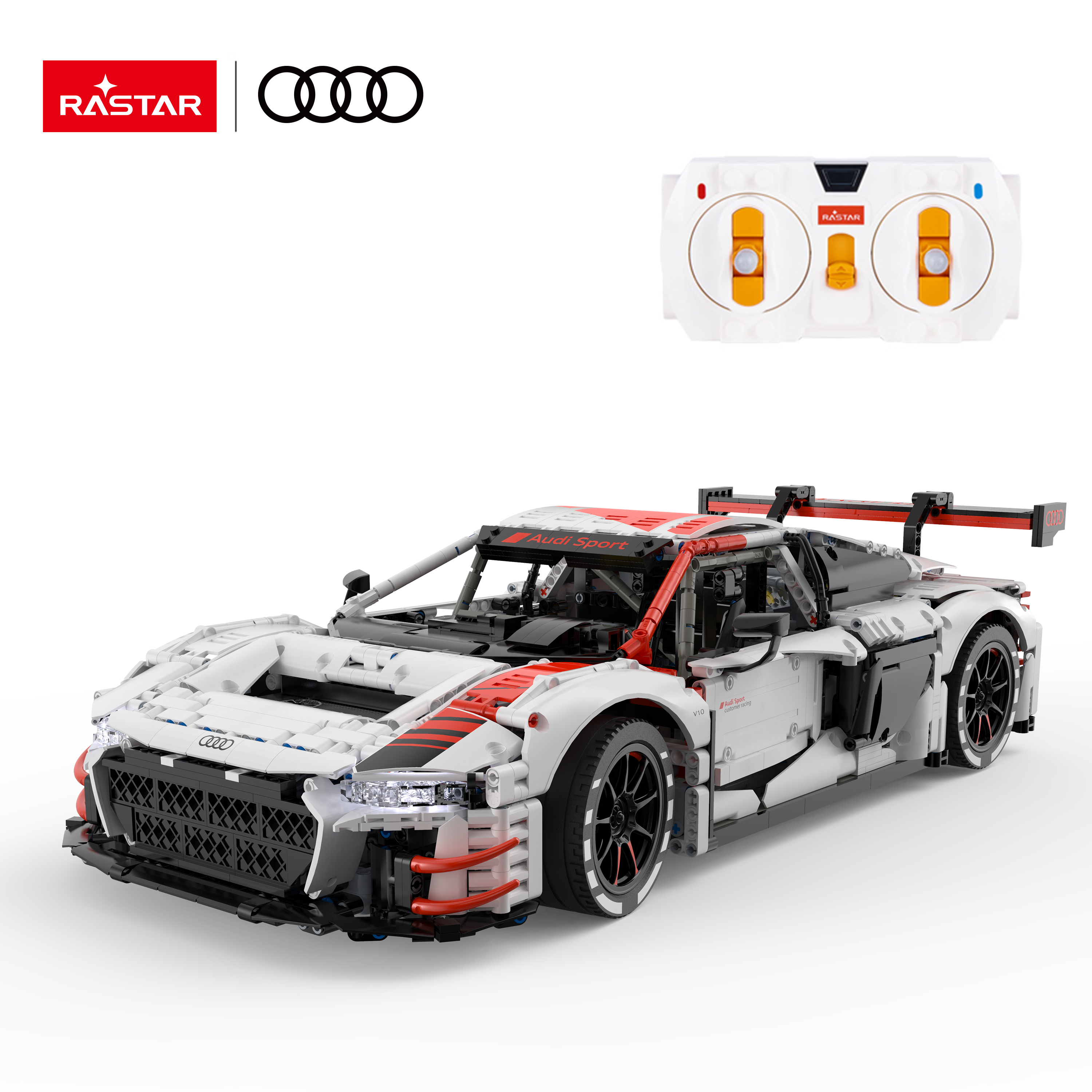 Die PowerFunctions können im Fahrzeug so verbaut werden, dass keine offen liegenden Kabel die Optik auch im Innenbereich stören. Des Weiteren hat Rastar versucht, durch den geschickten Einsatz von entsprechend farbigen Pins die typische Farbseuche zu vermeiden. Aufgebaut ist der Audi R8 LMS GT3 gut 56cm Lang und 27cm Breit. Türen und die mit Stoßdämpfern versehene Heckklappe lassen sich öffnen.