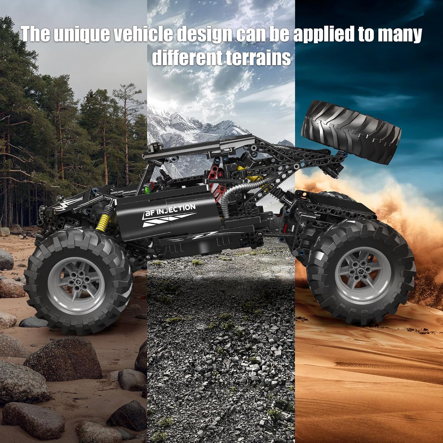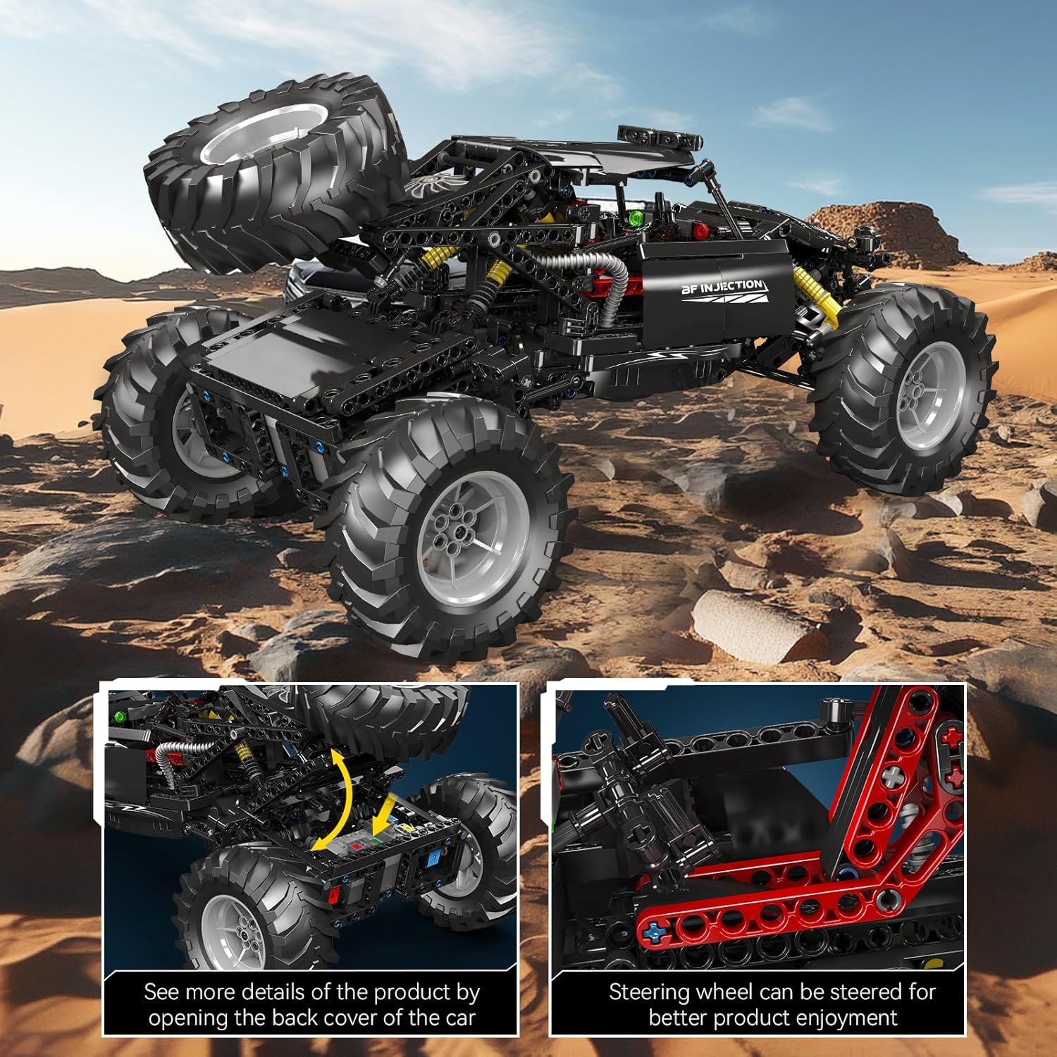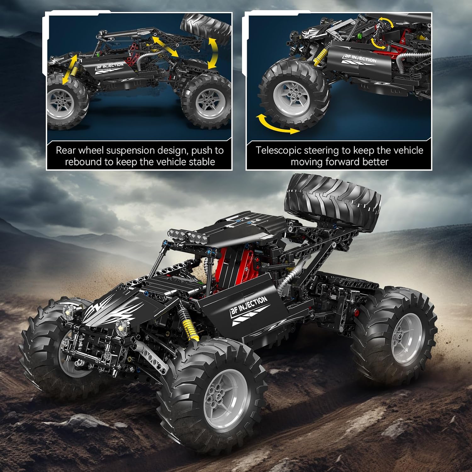 Der ultimative ferngesteuerte Offroad-Buggy für Technikfans. Seine leistungsstarke Federung und die robusten Motoren meistern jedes Gelände – von holprigen Straßen bis zu unwegsamem Gelände. Zwei Monster-Motoren sorgen dabei für den nötign Vortrieb.