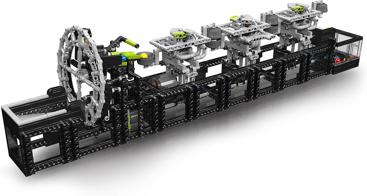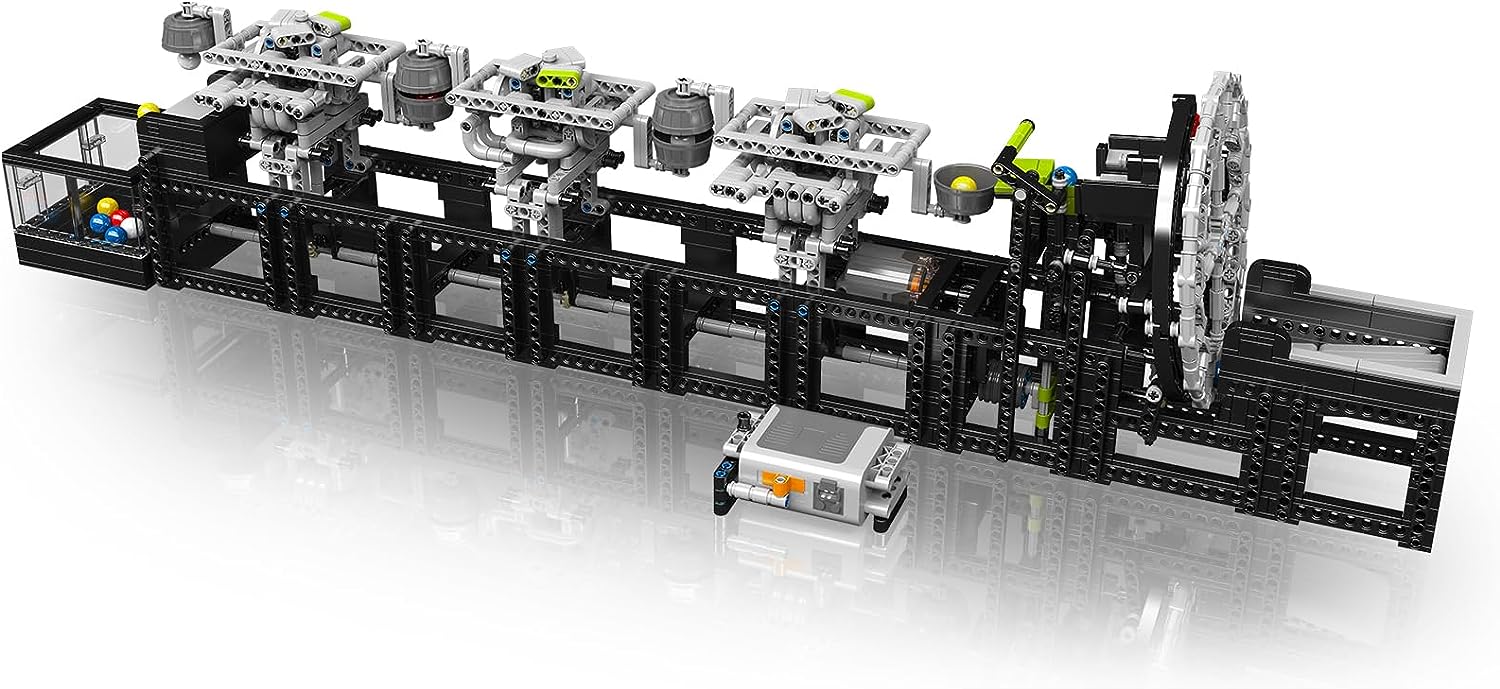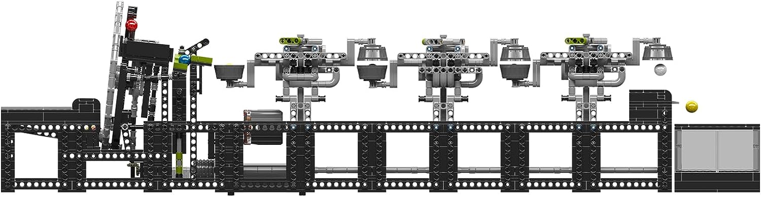 Das voll-motorisierte Set wird über einen XL-Motor angetrieben, dessen Funktion es ist Kugeln über einen Hebemechanismus nach oben zu befördern und diese Schritt für Schritt in einen Auffangkorb weiter zu reichen.