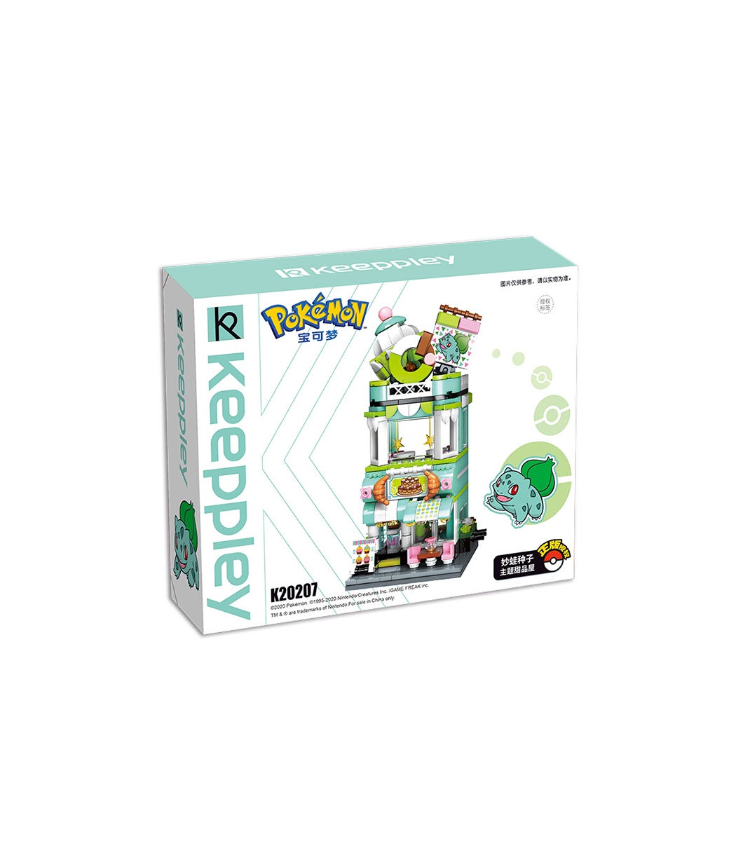 Keeppley City-Corner trifft Pokémon: Farbenfrohe Miniatur-Häuser mit unglaublicher Detailfülle. Jedes der vier Gebäude der Serie hat ein Cartoon-ähnliches Erscheinungsbild, das mit verschiedenen Pokémon-Charakteren zu interessanten Animationsszenen kombiniert werden kann. Treffe Dich mit Bulbasaur in seinem Laden auf ein feines Dessert.