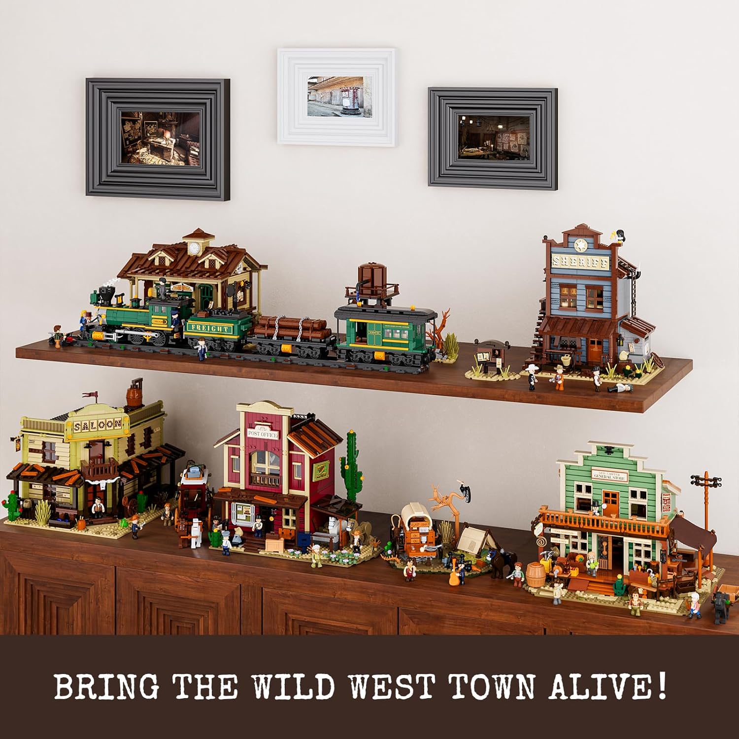 Das Cowboylager aus der The Old West-Serie versetzt dich mitten in die raue Atmosphäre eines Lagerplatzes am Lagerfeuer. Auf nur 542 Bauteilen entsteht eine stimmungsvolle Westernszene: Ein Planwagen, ein zeltartiger Unterschlupf aus Segeltuch und ein offenes Feuer bilden das Zentrum dieser kleinen Wüstenidylle. Werkzeuge wie Pfannen, Kaffeekessel und Feldflasche neben dem Feuer machen den authentischen Eindruck perfekt. Ein knorriger Baumstumpf als Sitz, ein Kaktus am Rand und strukturierte Bodenplatten runden die Szenerie stilvoll ab.