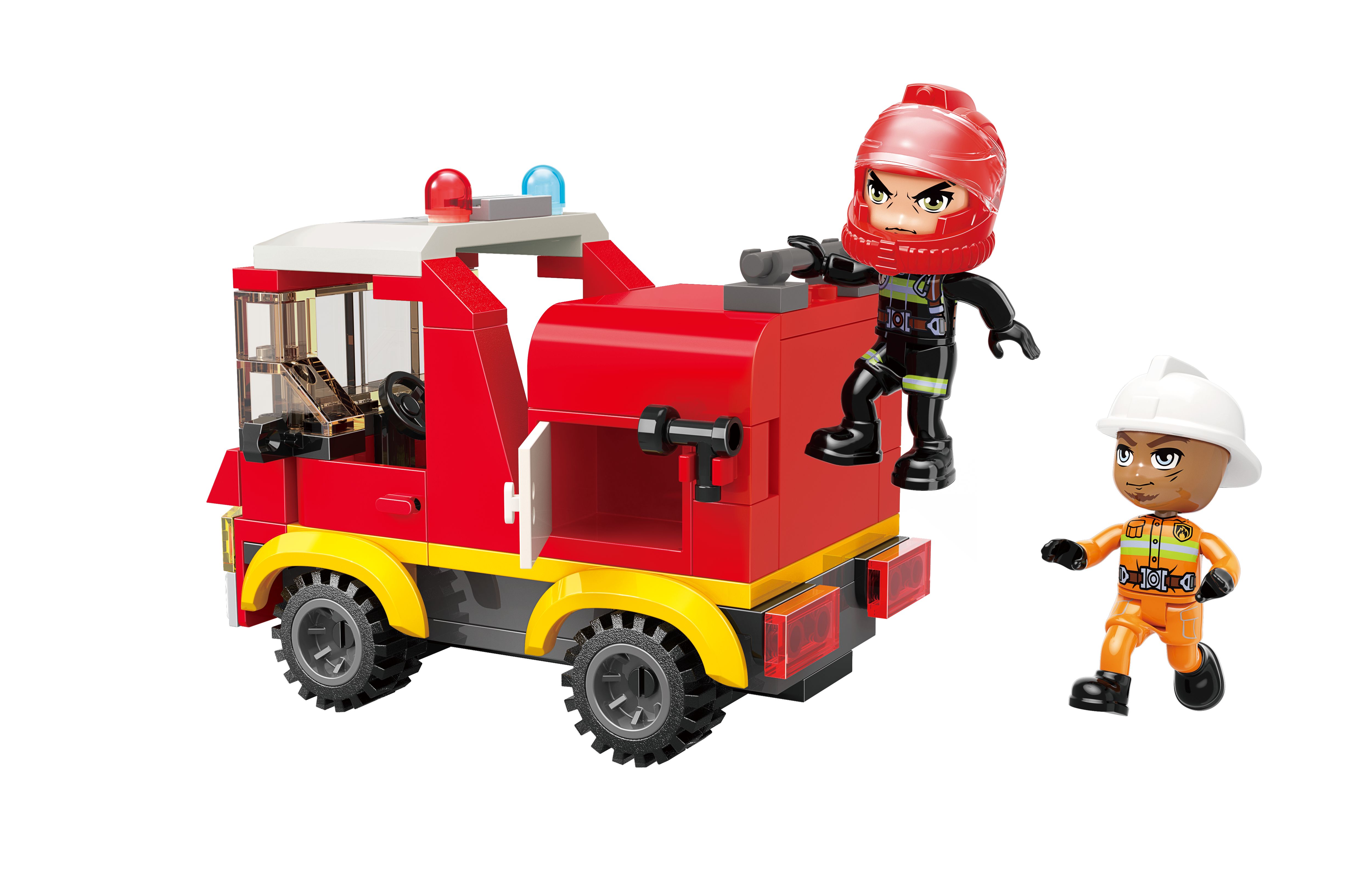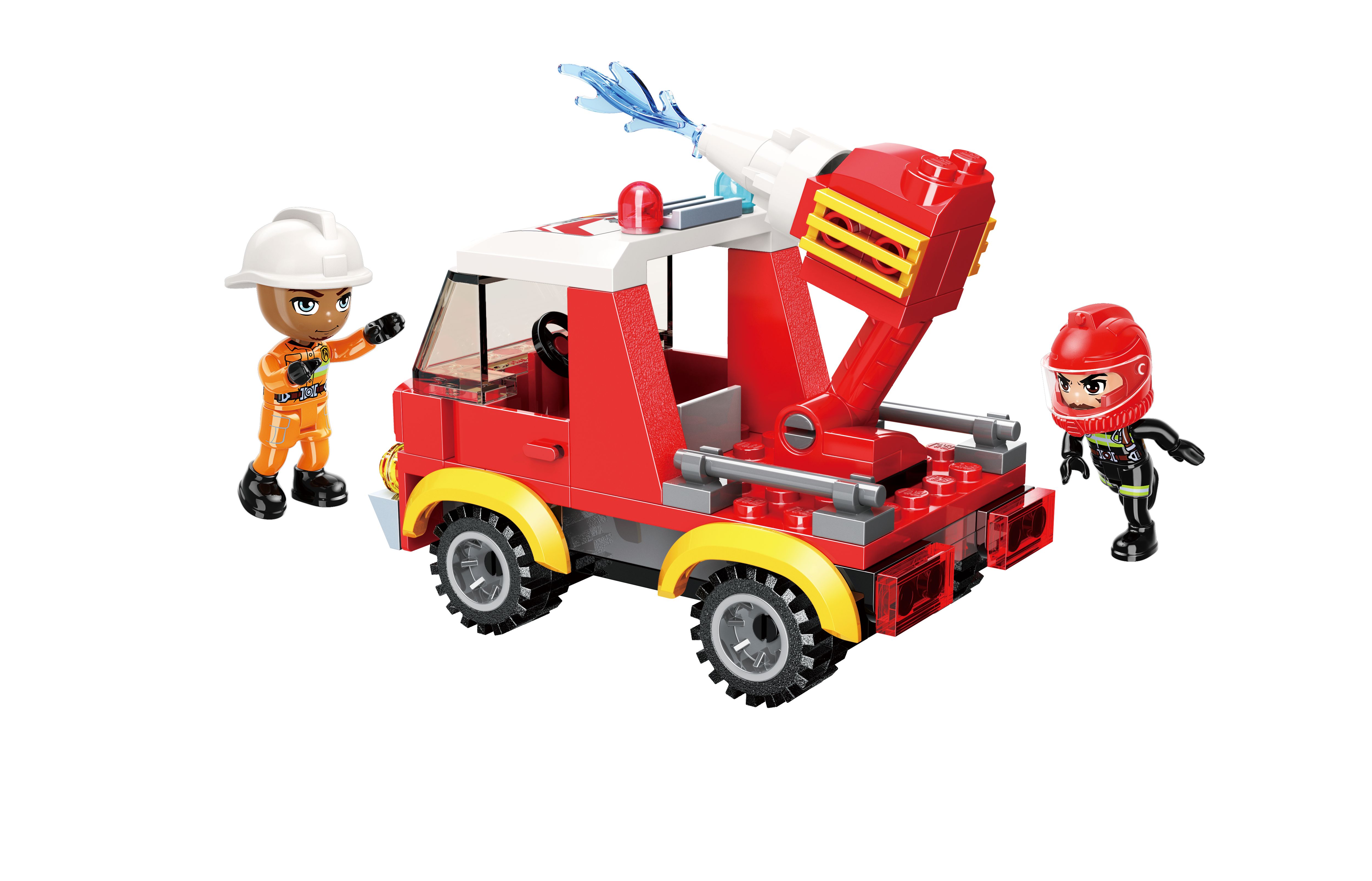 Mit Kommandoturm, Büros und Garage hat die Feuerwehr hier alles was sie braucht um in MineCity für Sicherheit zu sorgen. Überwache Deine Stadt im Kommandoturm, lass das Löschfahrzeug aus der Garage ausrücken und lösche das Feuer. Wasserkanone kann Wasser bis zu 50cm weit spritzen.