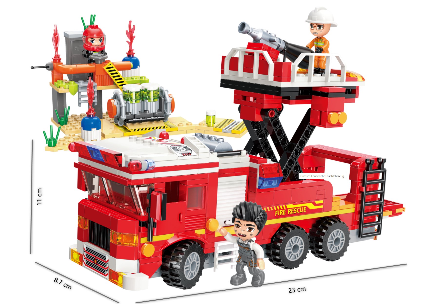 Mit dem tollen grossen Feuerwehr Löschfahrzeug ist jeder Brand garantiert schnell unter Kontrolle. Falls der Brand doch mal zu gross ist, eilen die Kameraden aus der grossen Feuerwehrstation zu Hilfe. Die Wasserkanone kann Wasser bis zu 50cm weit spritzen.