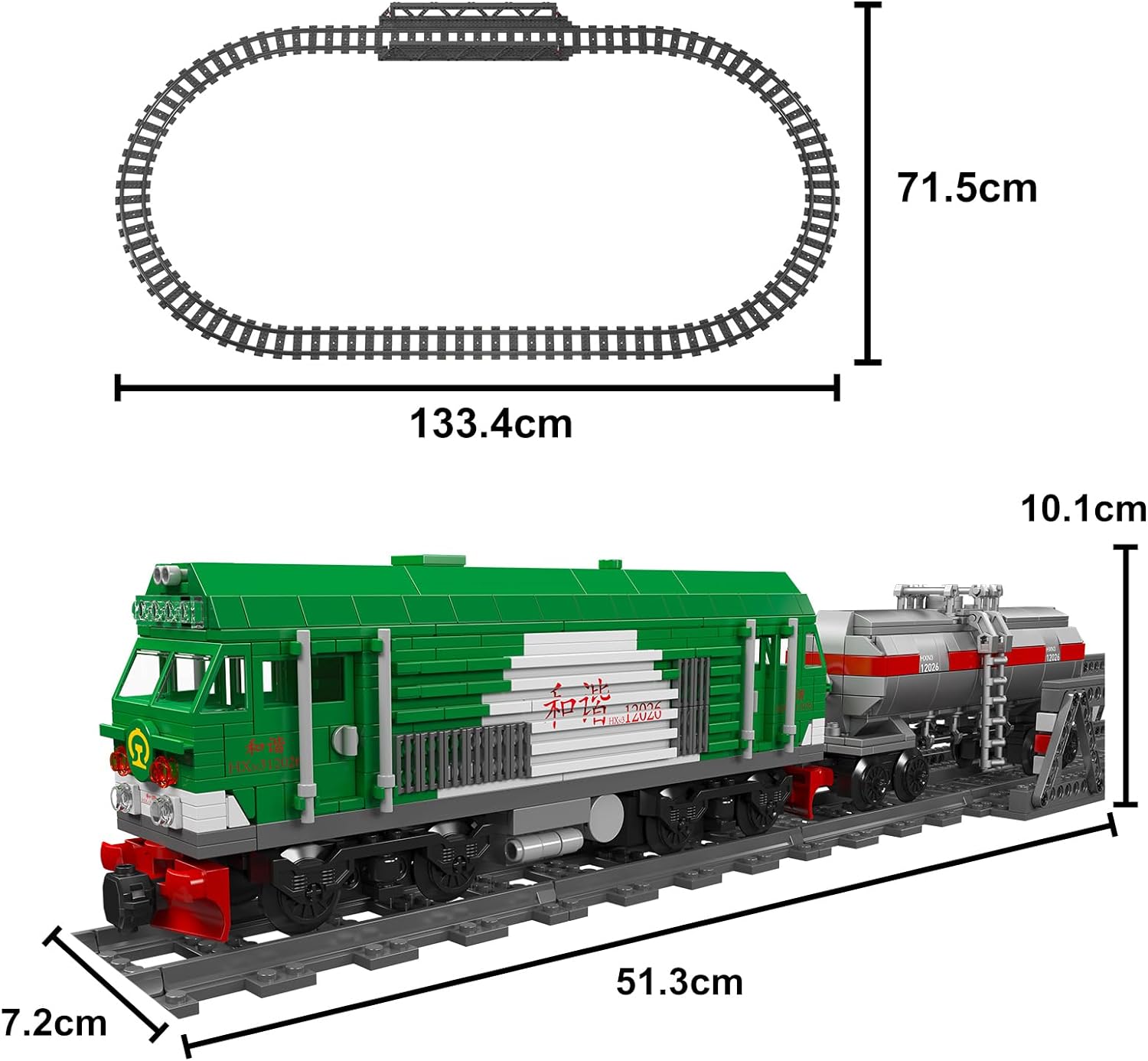 Wie bei der World Railway Reihe von Mould King üblich gehört zum Set auch noch ein Schienen-Oval (120cm x 80cm). Dieses lässt sich in ein vorhandenes Schienen-Netz integrieren, da voll kompatibel mit den führenden Herstellern.
