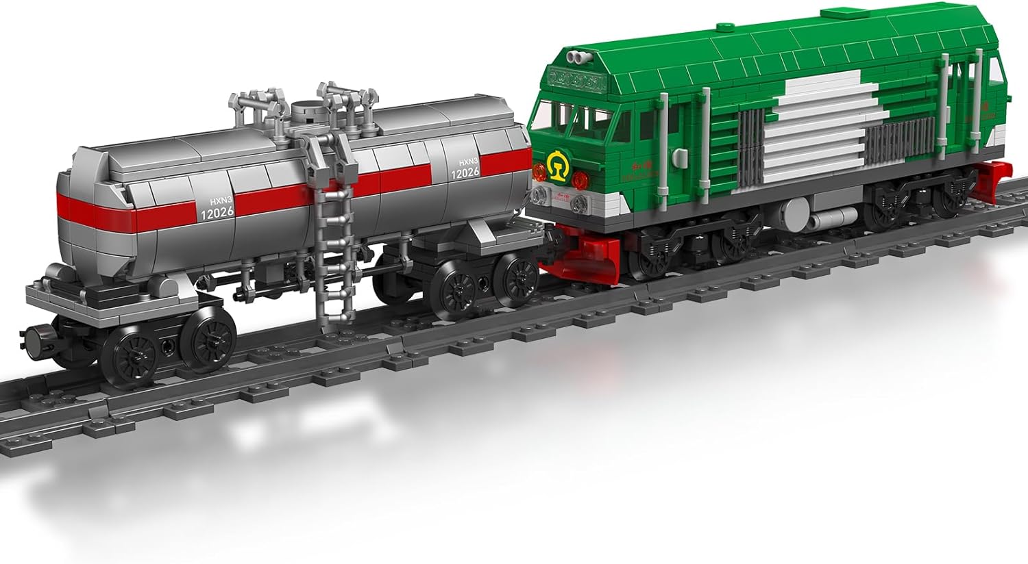 Formschönes und farblich ansprechendes Modell einer EMD SD40-2 Diesel Lokomotive, inklusive Verladekran und LKW. Dieses Set ist mit dem Mould King RWY-Modul motorisiert und wird über die beiliegende Fernbedienung gesteuert. Das RYW-Modul vereint Antrieb, Empfänger und Akku in einem Modul, dass an den Form-Faktor des Eisenbahn-Motor angelehnt ist (aber 1 Noppen breiter). Wie bei der World Railway Reihe von Mould King üblich gehört zum Set auch noch ein Schienen-Oval (120cm x 80cm). Dieses lässt sich in ein vorhandenes Schienen-Netz integrieren, da voll kompatibel mit den führenden Herstellern. Wie immer bei Mould King sind die Steine nach Bauabschnitten in Tüten vorsortiert und die Anleitung leicht verständlich.