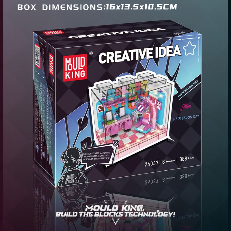 Mould King präsentiert ein neues Mitglied der Street Scene Serie – den Schönheitssalons. Dieses kleine, aber feine Set besteht aus 366 Teilen und ist darauf ausgelegt, den Charme eines schicken Schönheitssalons in Deine Sammlung zu bringen. Die mitgelieferte Displaybox schützt dabei vor Staub und bringt die integrierte Beleuchtung so richtig zur Geltung. Enthält zwei passende Mould King Minifiguren.