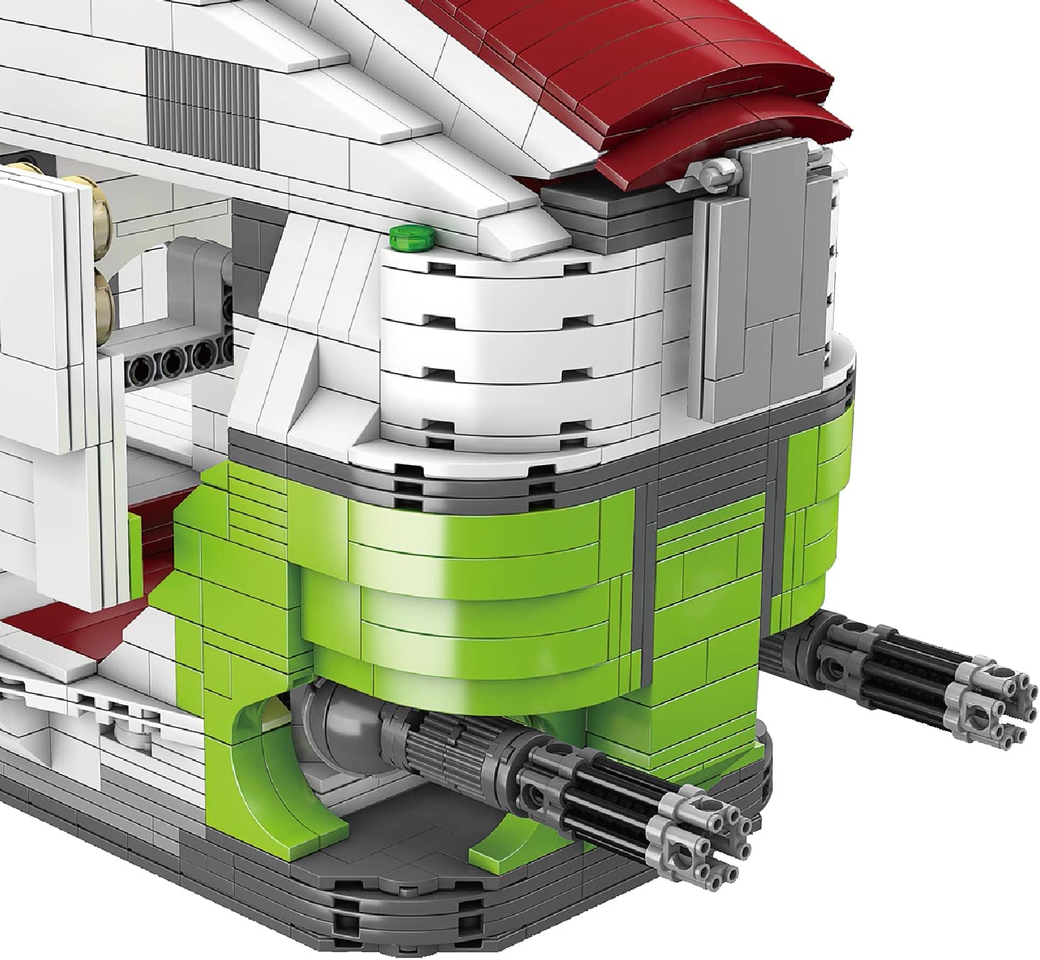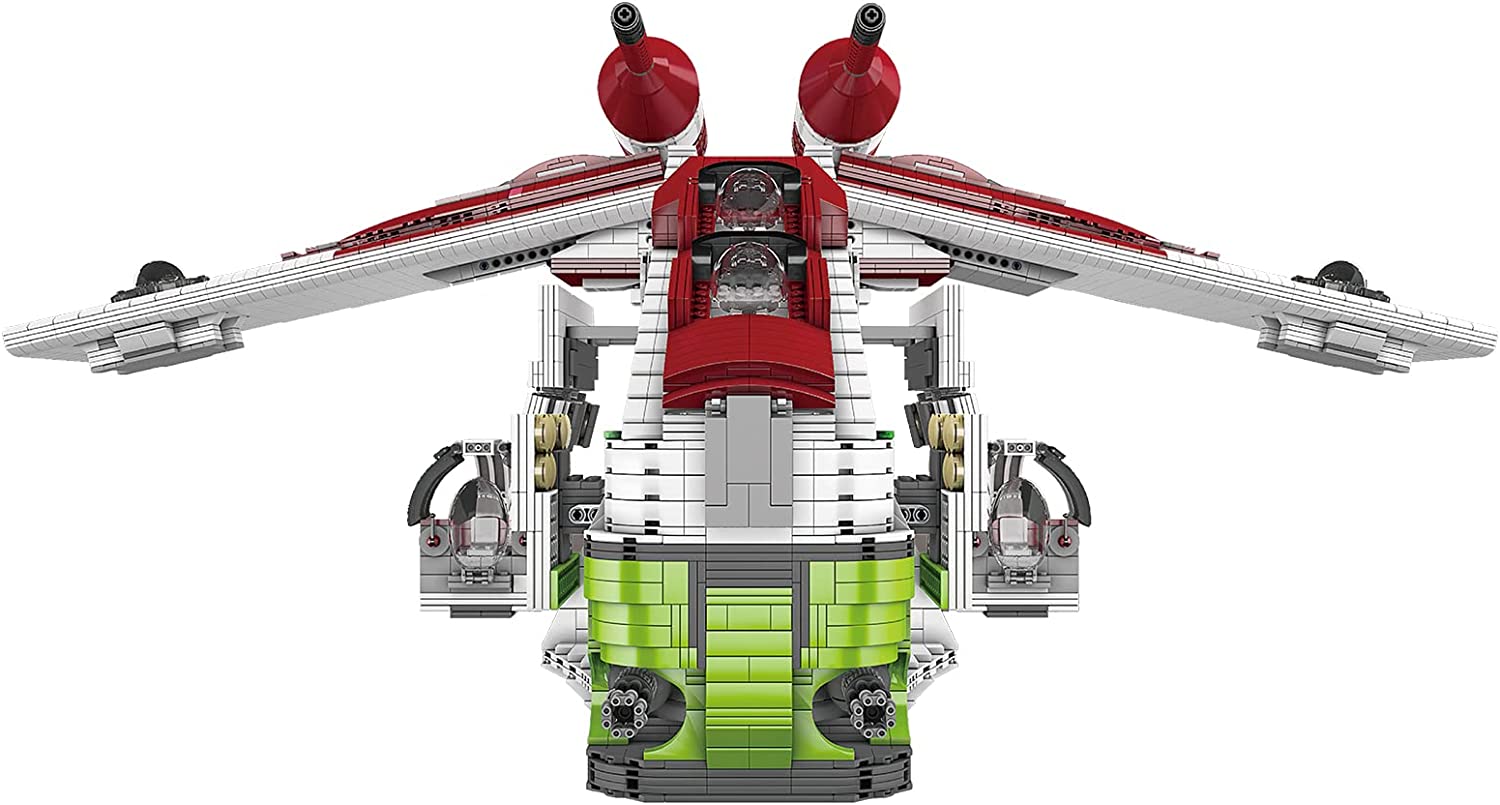 Mit knapp über 8000 Teilen und einer Größe von ca 80 x 90 x 40 cm bringt Mould King wieder einen richtig dicken Brummer aus der MK-Stars Serie auf den Markt, der viele Stunden Bauspass garantiert - Das LAAT-1 Kanonenboot (Low Altitude Assault Transport/infantry Gunship).