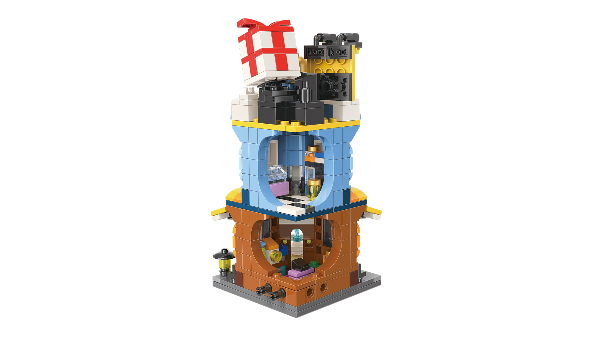 City Corner Serie 1: Farbenfrohe Miniatur-Häuser mit unglaublicher Detailfülle. Fünf kleine kombinierbare Gebäude, die Innen wie Außen vor kreativen Bauelementen nur so strotzen.