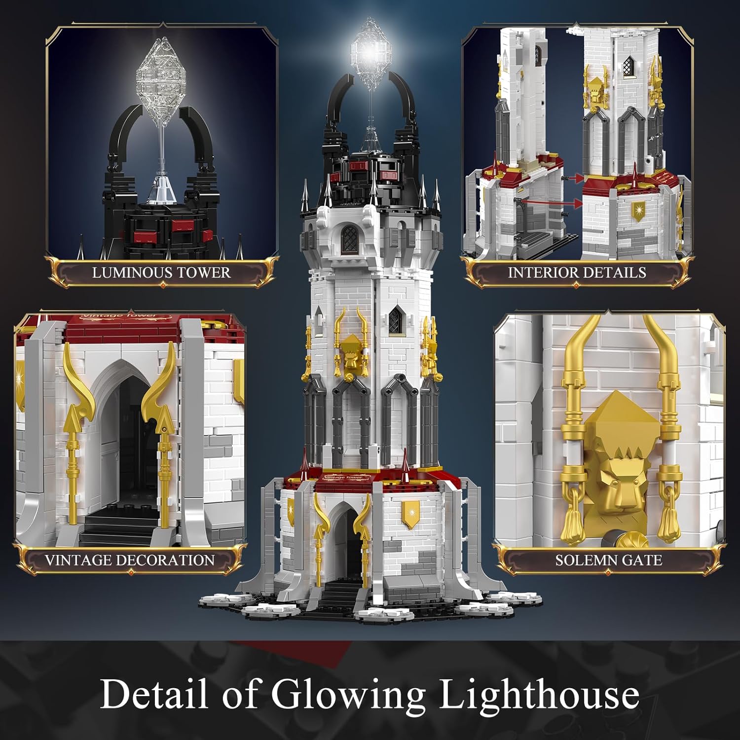 Dieses Leuchtturm-Set entführt Dich in eine geheimnisvolle mittelalterliche Welt: Vom hell erleuchteten Leuchtturm bis zum Löwenkopftor strahlt jeder Block die Schönheit des Mittelalters aus.