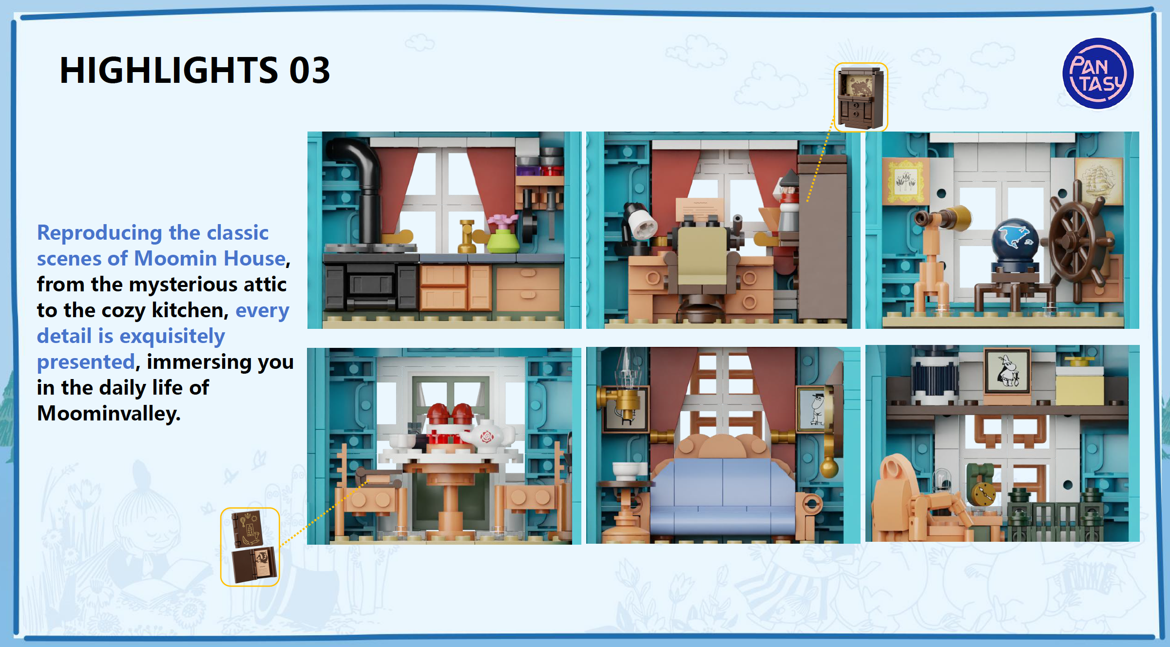Die klassischen Szenen des Moominhauses, vom geheimnisvollen Dachboden bis zur gemütlichen Küche, sind detailgetreu nachgebildet und lassen dich in das tägliche Leben im Mumintal eintauchen.