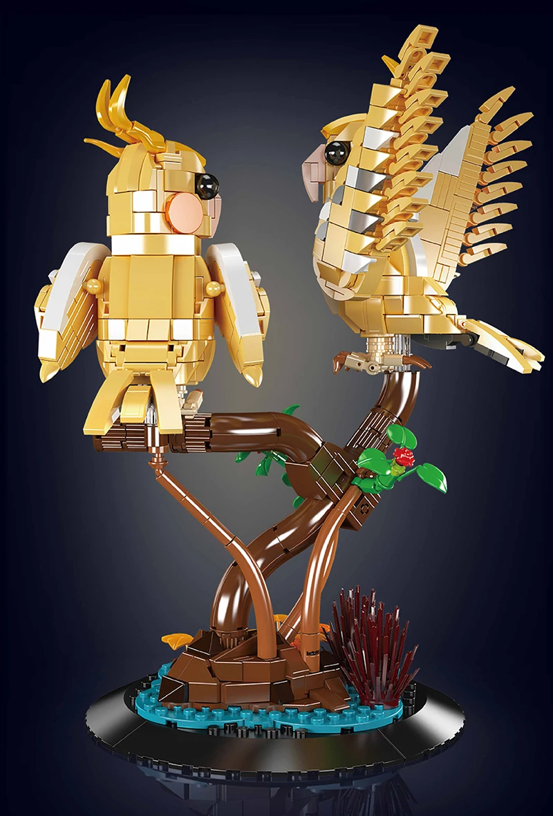 Mould King hat nen Vogel und bewirbt dieses Set als Schwarzkopflori - aus unserer Sicht sind das zwei schöne Nymphensittiche. Egal, der Bauspass kommt trotzdem nicht zu kurz.