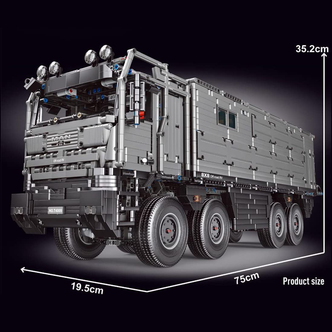 Ab ins Gelände! Der Tatra T813 ist ein 8x8 Allradantrieb LKW, der für schwere Transporte auf unebenem Gelände ausgelegt ist. Mit diesem Nachbau aus über 3600 Technik- und Klemmbausteinen hast Du nicht nur jede Menge herausfordernden Bauspass, sondern aufgrund der vielzahl an motoriserten Funktionen auch jede Menge Spielspass. Insgesamt 9 Motoren ( 3 x M, 6 x L) treiben den über 60cm langen und 25 cm Hohen Koloss danke der profilstarken Reifen über beinahe jedes Hindernis. Eine Akku-Box, sowie eine Fernsteuerung gehören ebenfalls zum Lieferumfang.Sehr gute Qualität der Bausteine. 100% kompatibel mit Klemmbausteinen anderer führender Hersteller. Gut verständliche Bauanleitung beiliegend.