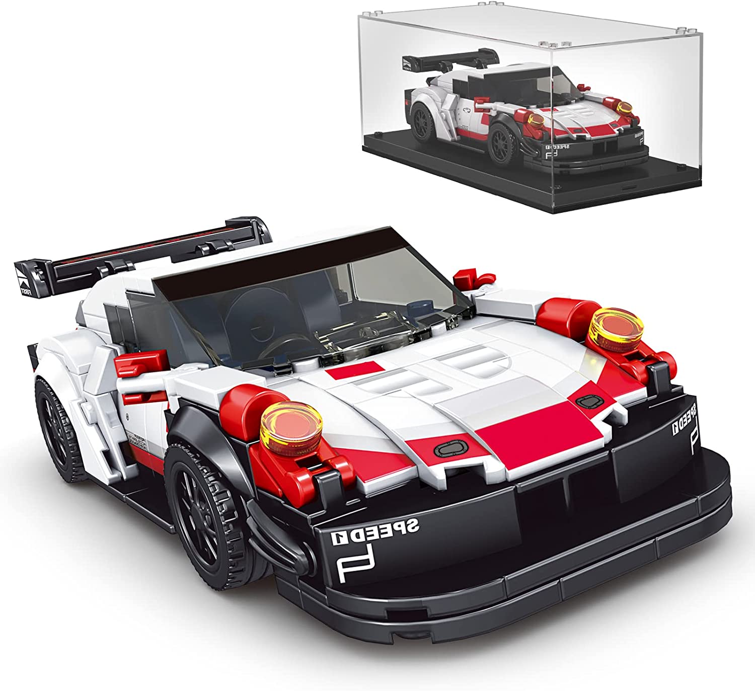 Dieser Rennwagen mit 8 Noppen Breite lässt Klemmbausteinmeister einen der exklusivsten Flitzer der Welt sammeln. Baue und entdecke diese detailgetreue Nachbildung eines deutschen Sportwagen der Marke Porsche. Faszinierend aus jedem Blickwinkel und geeignet zum Ausstellen oder für spannende Rennen! Unter der Model S Serie von Mould King versteckt sich ein wahrer Fundus an gelungenen kleinen Sportwagen-Modellen. Faszinierend aus jedem Blickwinkel und geeignet zum Ausstellen oder für spannende Rennen! Inklusive bebaubarer Kunststoff-Vitrine (Noppen an Boden und Deckel )! Set enthält Aufkleber. Die Serie umfasst weitere Modelle, alle mit dazugehöriger Sammelvitrine, die sich auch stapeln lässt.