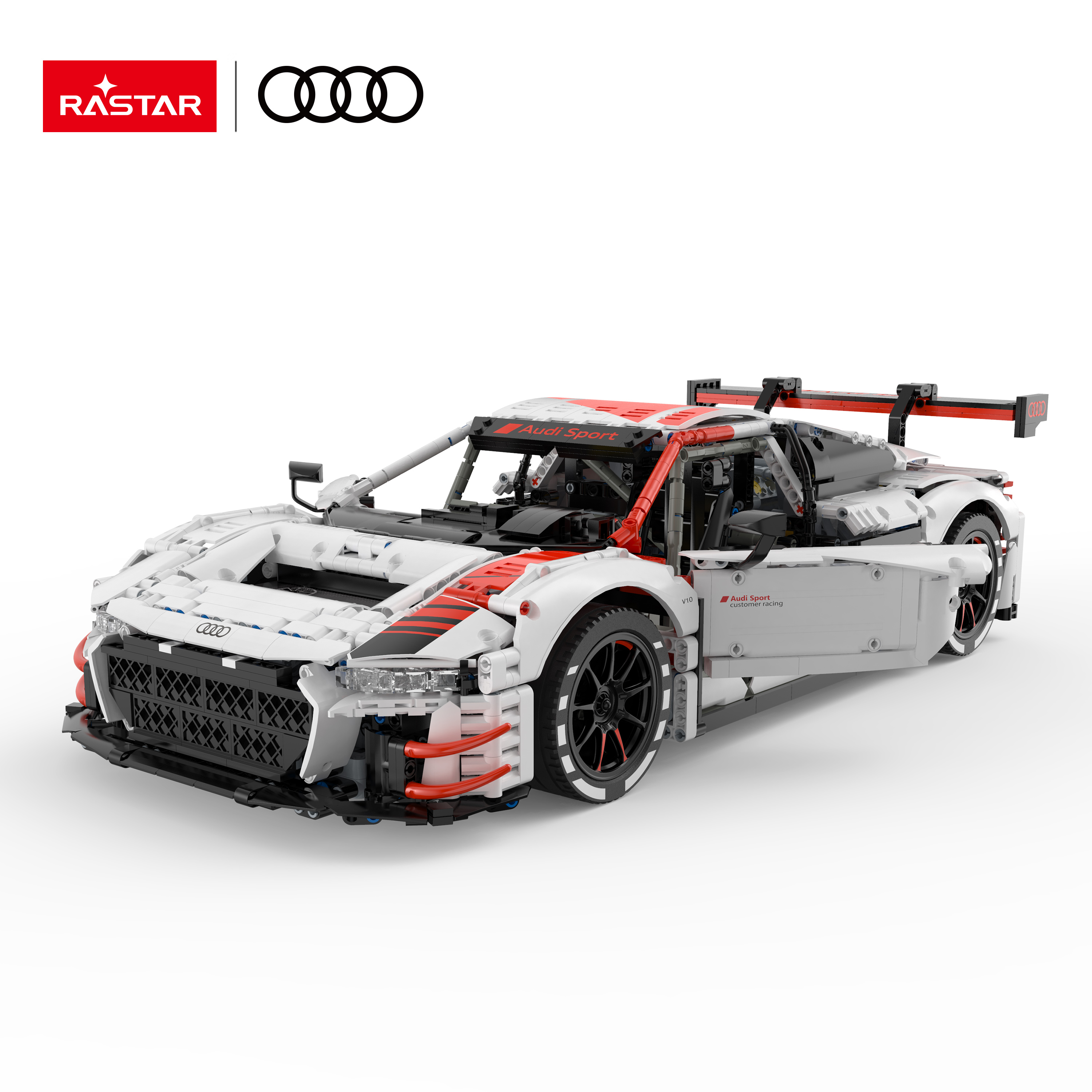 Die optionalen PowerFunctions können im Fahrzeug so verbaut werden, dass keine offen liegenden Kabel die Optik auch im Innenbereich stören. Des Weiteren hat Rastar versucht, durch den geschickten Einsatz von entsprechend farbigen Pins die typische Farbseuche zu vermeiden. Aufgebaut ist der Audi R8 LMS GT3 gut 56cm Lang und 27cm Breit. Türen und die mit Stoßdämpfern versehene Heckklappe lassen sich öffnen.